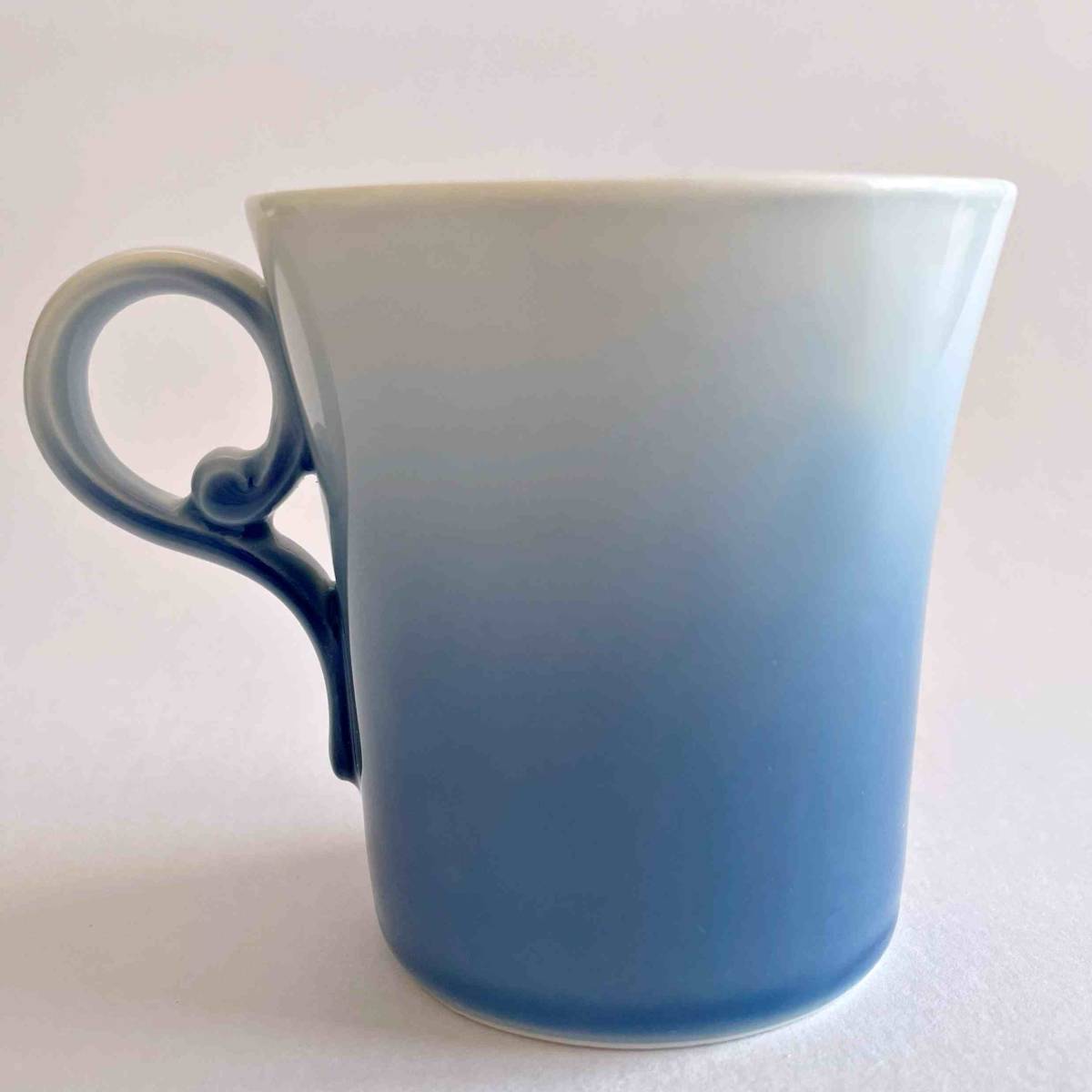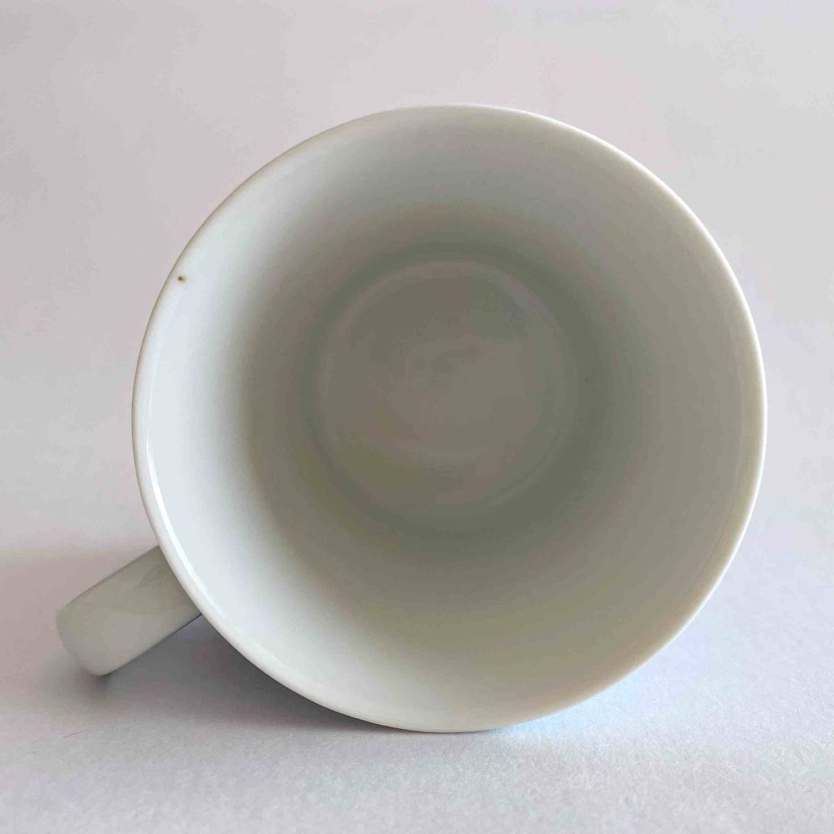 カップのふちに茶色い点が見られ、底面糸底に小さな凹みがございます。