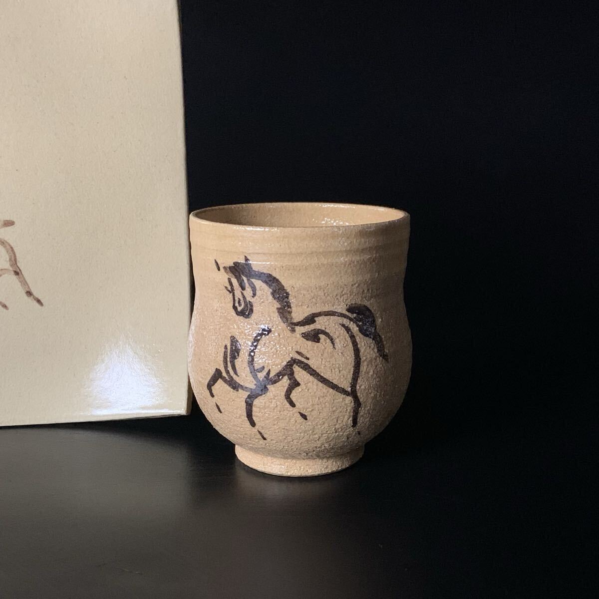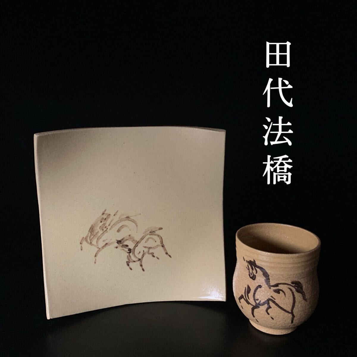 【十五世 田代法橋 作】相馬駒焼 田代清治右衛門 走駒 跳駒 茶碗 皿 2点 // 相馬焼 古相馬 大堀相馬焼 古相馬焼 湯呑 茶道具