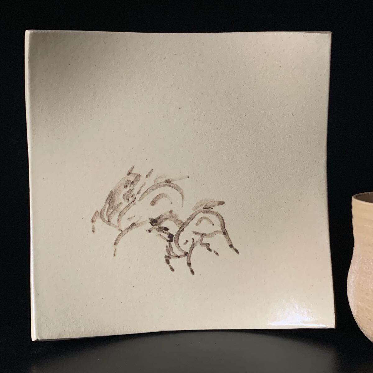 【十五世 田代法橋 作】相馬駒焼 田代清治右衛門 走駒 跳駒 茶碗 皿 2点