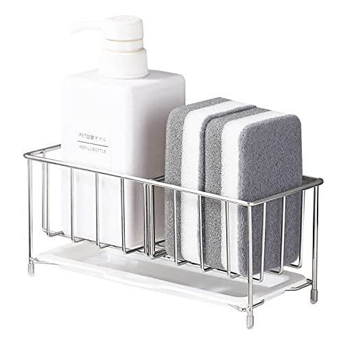 Sitengle スポンジホルダー キッチンスポンジ洗剤置き 18/8ステンレス製 スポンジラック たわし入れ スポンジ置き キッチン収納 小物 (シルバー)