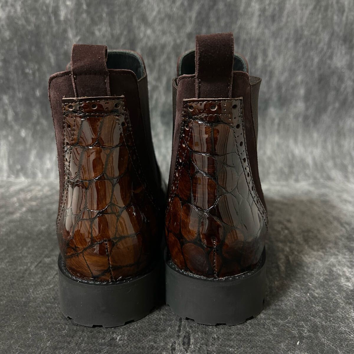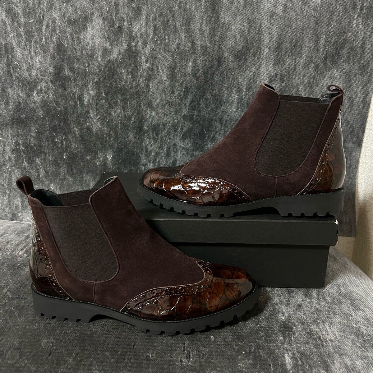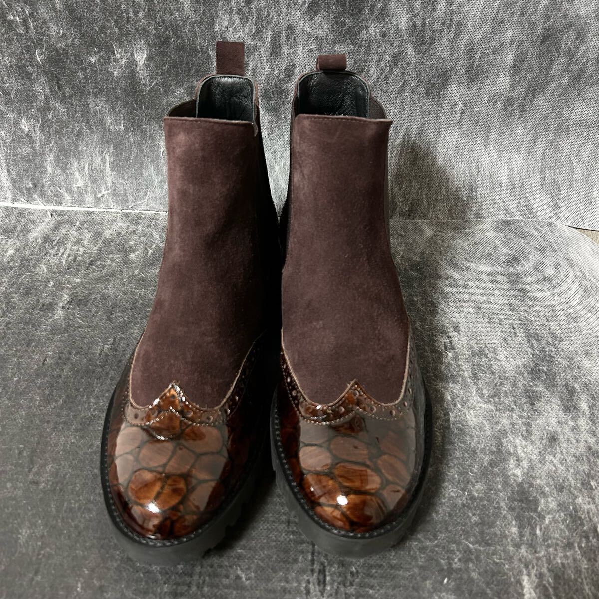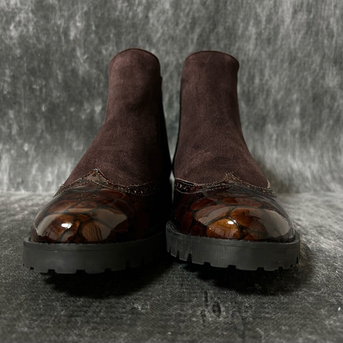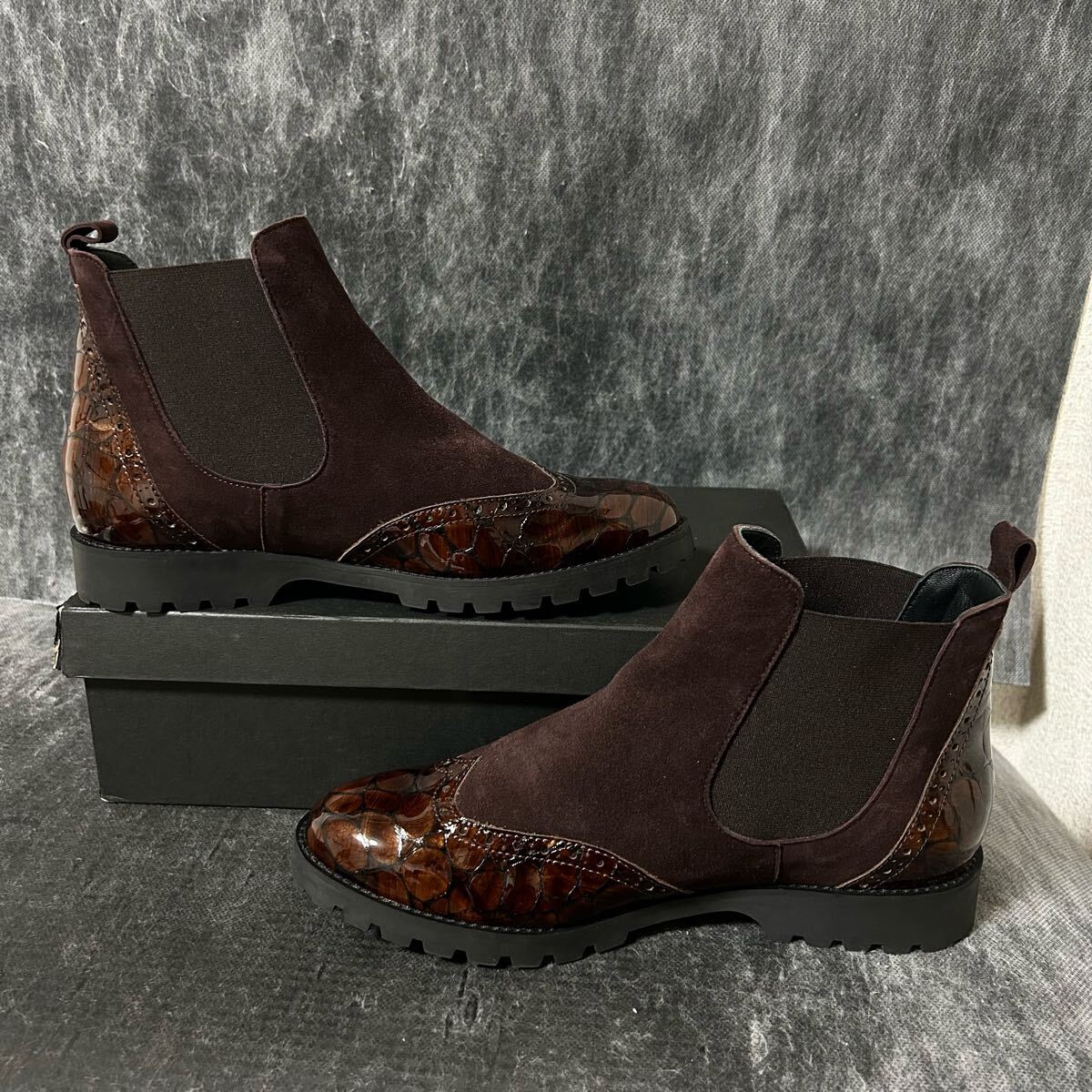 【未使用/大きいサイズ】 ¥30800- タルサタイム AEROBICS サイドゴアブーツ エナメル×スエード ブラウン レディース size39 25cm相当