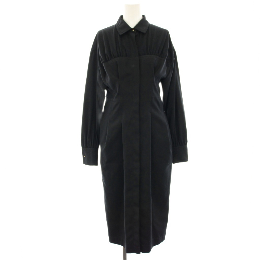 ユナイテッドトウキョウ コーディネートワンピース シャツワンピース ミモレ ロング 異素材切替 長袖 1 黒 ブラック 508310003