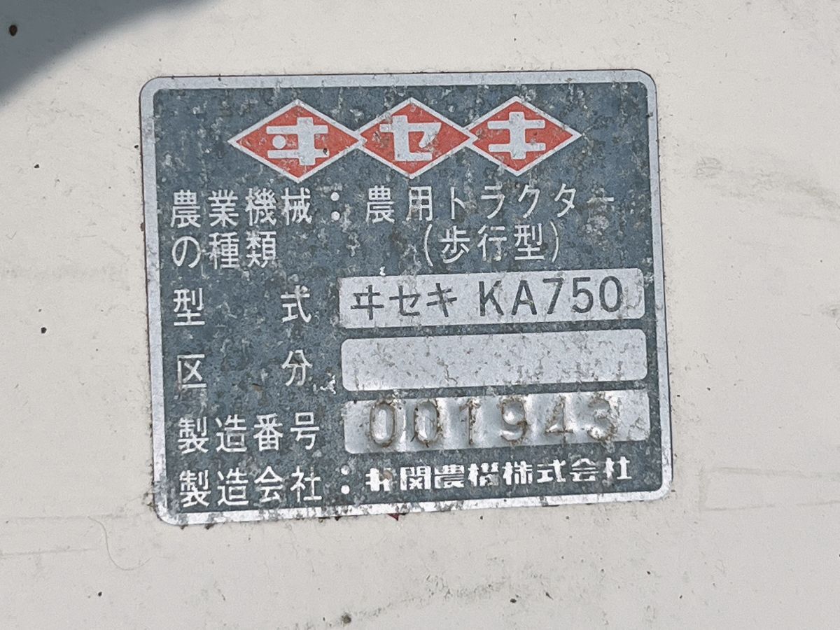 中古 ISEKI イセキ ディーゼル 耕うん機 KA750 セルスタートOK エンジン HS75-L 7.5馬力 ※パンクあり 耕耘 耕運機 茨城 0821あら1 I外 自
