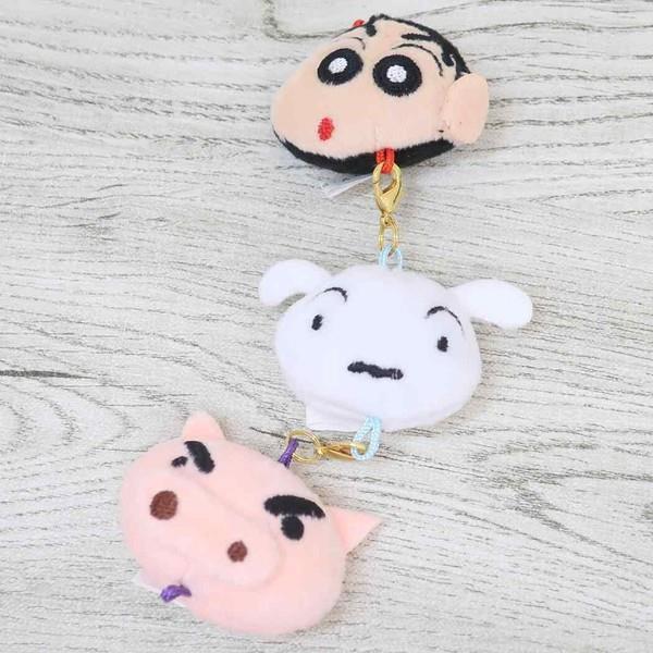 ●大人気アニメ【クレヨンしんちゃん】こちらは定番アイテム【マスコットチャームキーホルダー】縦につなげたり、好きなキーホルダーをつなげて楽しめる。