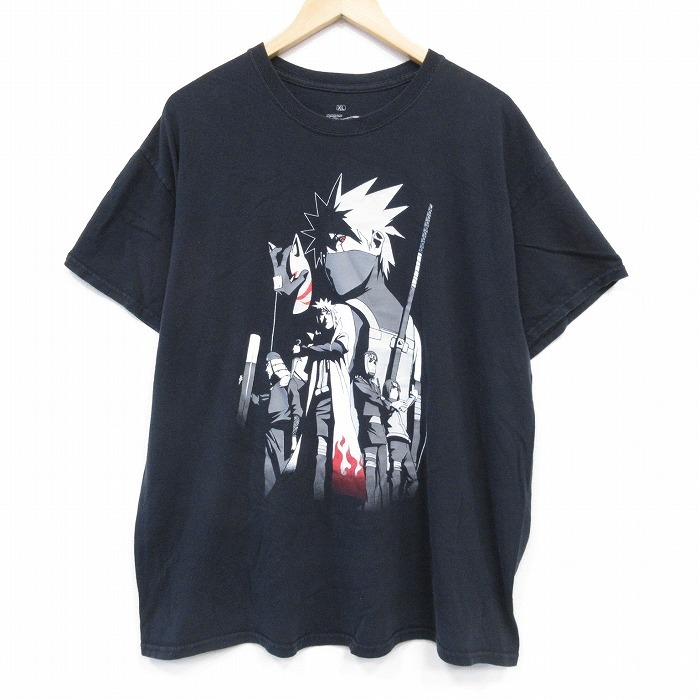 【商品名】 XL★古着 半袖 Tシャツ メンズ アニメ ナルト疾風伝 はたけカカシ 大きいサイズ コットン クルーネック 黒【spe】