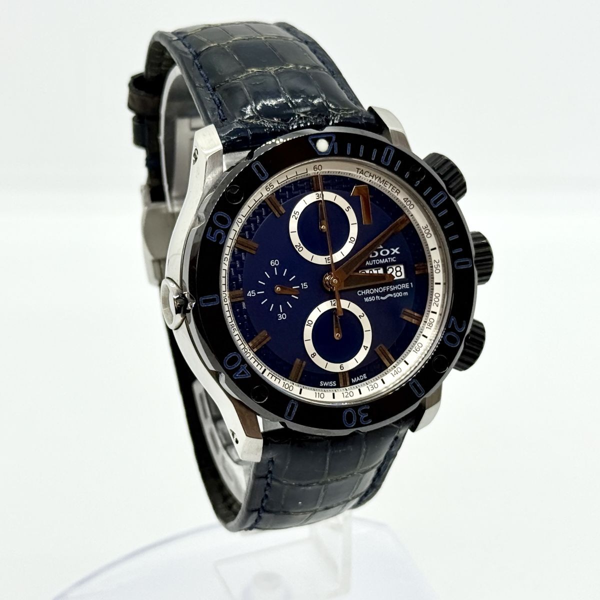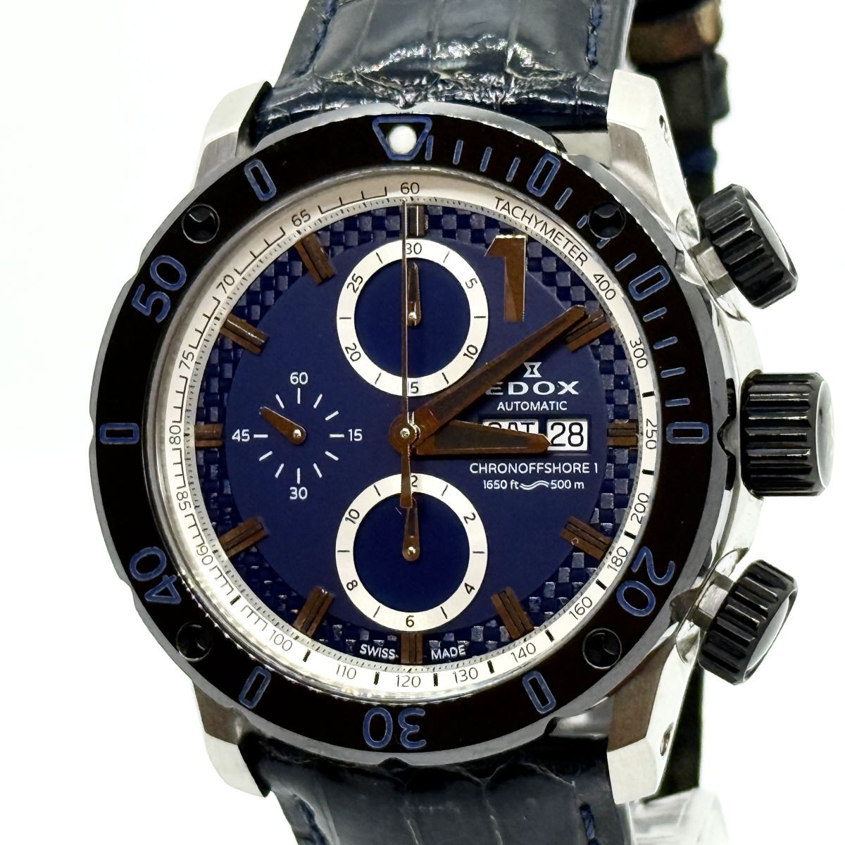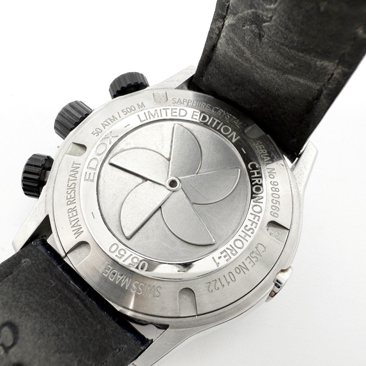 T7069 超希少 限定モデル キリ番 50/50 EDOX エドックス クロノオフショア1 980569 自動巻き SS 革ブルー 01122 トミヤ×EDOX限定