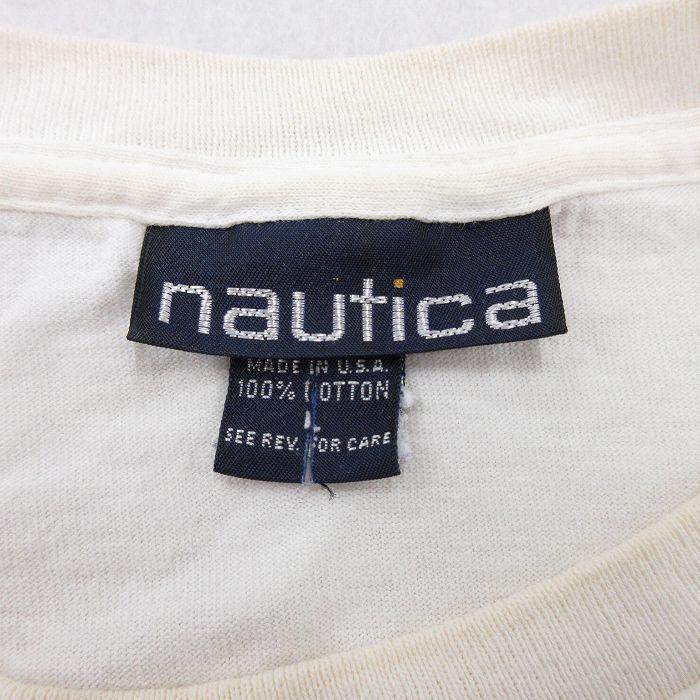 【商品名】 XL★古着 ノーティカ 半袖 ビンテージ ブランド Tシャツ メンズ 90年代 90s ワンポイントロゴ 胸ポケット付き コットン クルーネック USA製 白【spe】