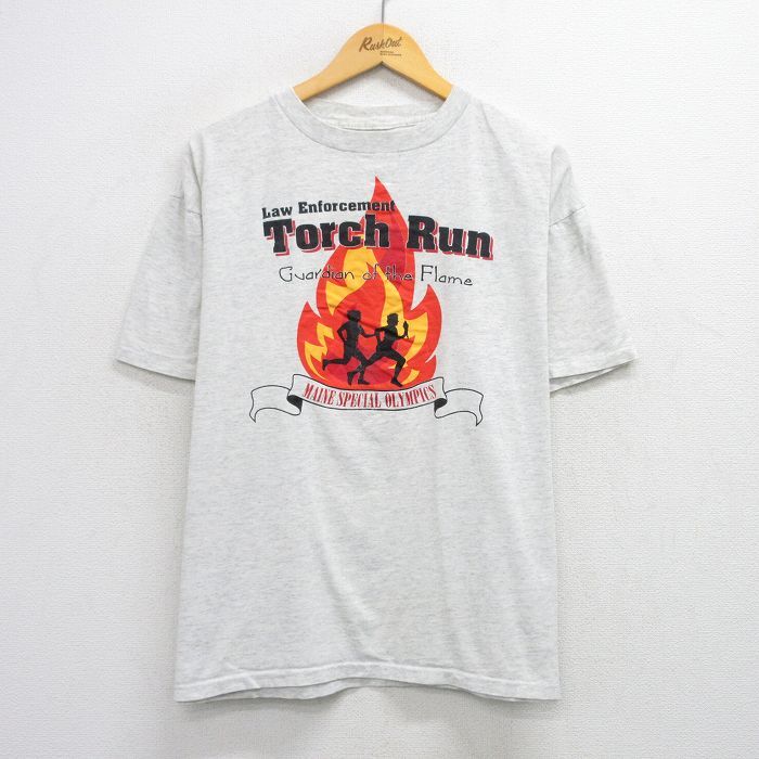 【商品名】 XL★古着 半袖 ビンテージ Tシャツ メンズ 90年代 90s Torch Run 薄グレー 霜降り