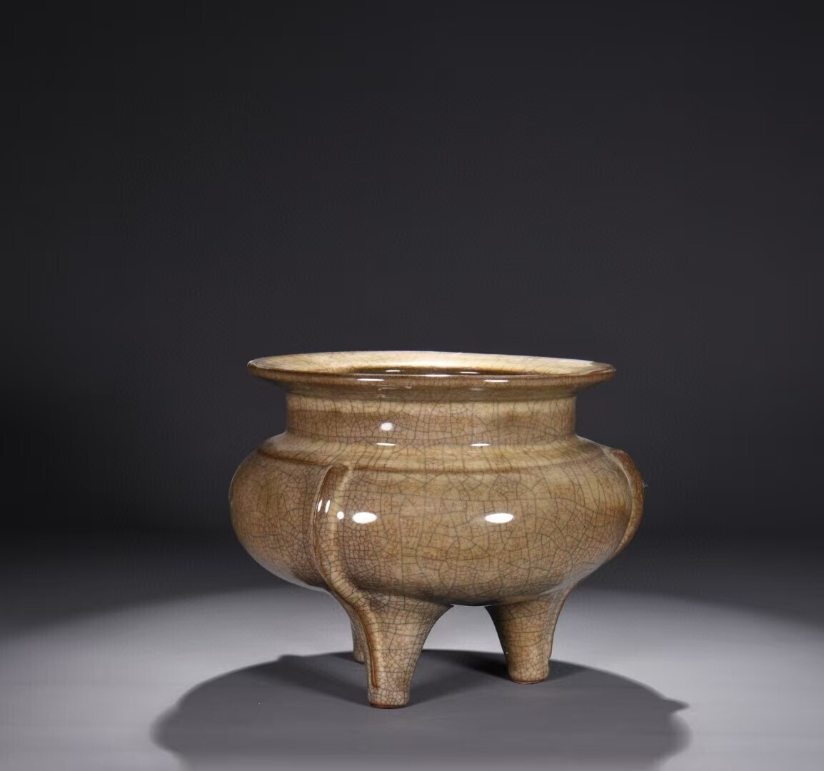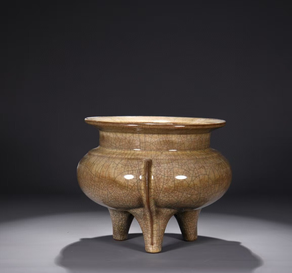 中国古美術 宋代哥窯 金絲鉄線 三足鬲式炉 古陶磁器 茶道具 茶室飾り 骨董品 美術品 置物 時代物 收藏品 文房置物 R07072429