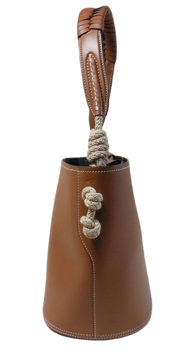 | 素材、カラー | カーフレザー(仔牛革)、カラーはCOGNAC+BLACK(ブラウン+黒)、ラムスキンのライニング、メタルパーツは光沢のある銀色 |