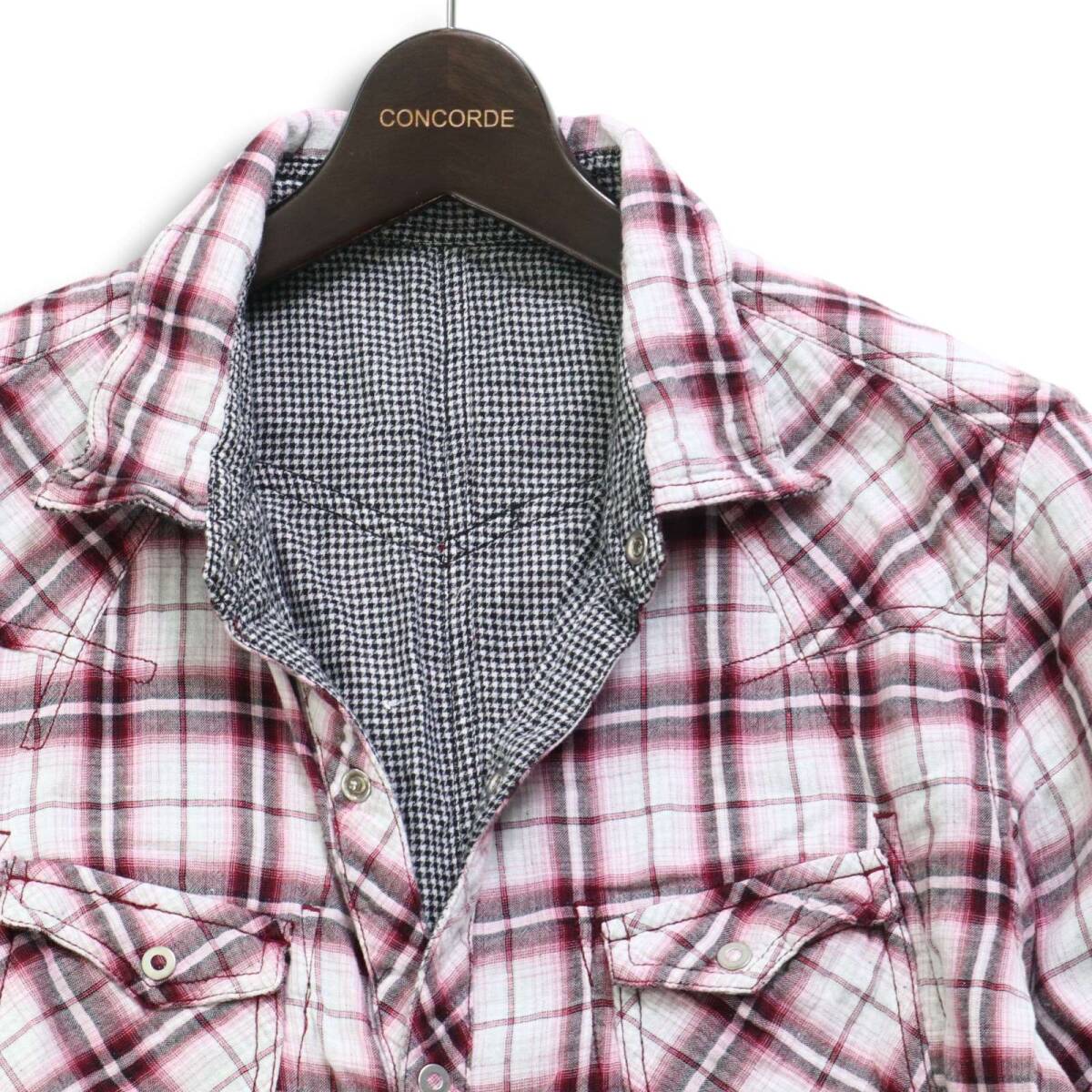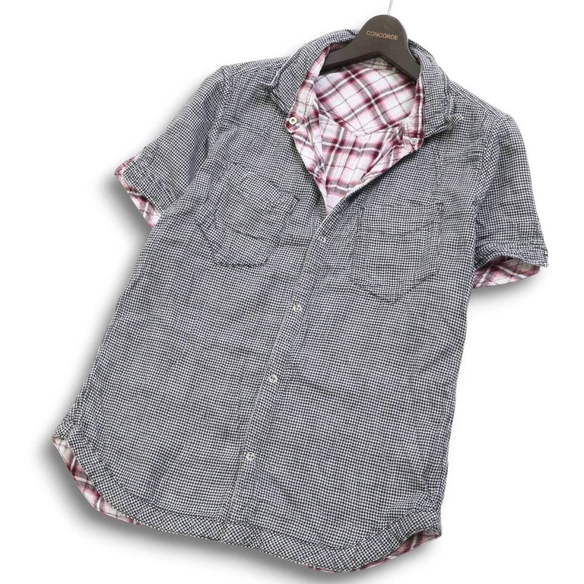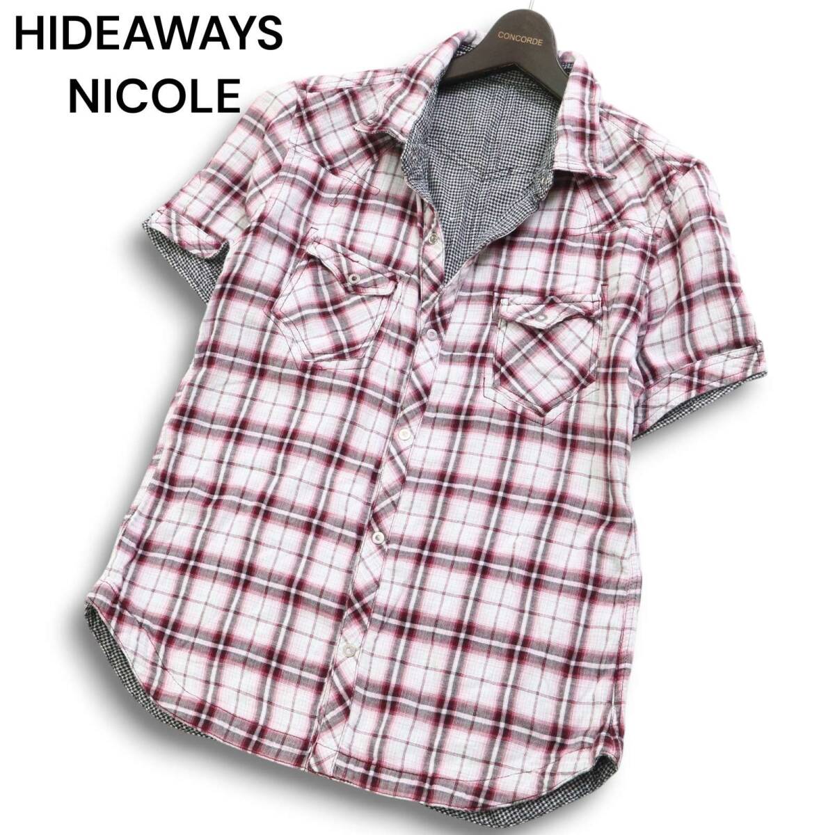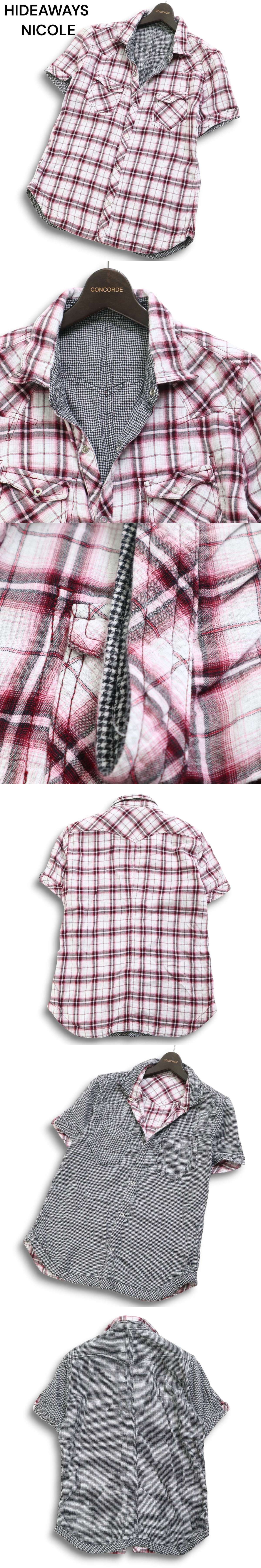 HIDEAWAYS NICOLE ハイダウェイ ニコル 春夏 2way リバーシブル★ 半袖 ウエスタン チェック シャツ Sz.50 メンズ