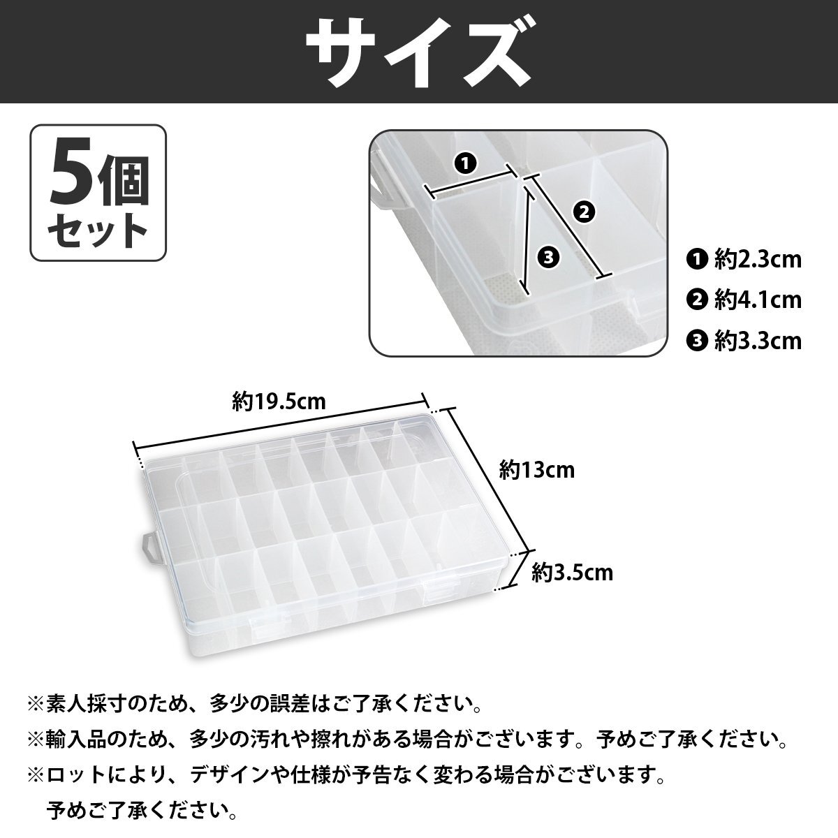 【送料無料】5個セット プラスチック パーツボックス 『横19.5cm 奥13.5cm 高さ3.7cm』 最大24口 仕切り 小物 ネジ ネイル ケース ホビー