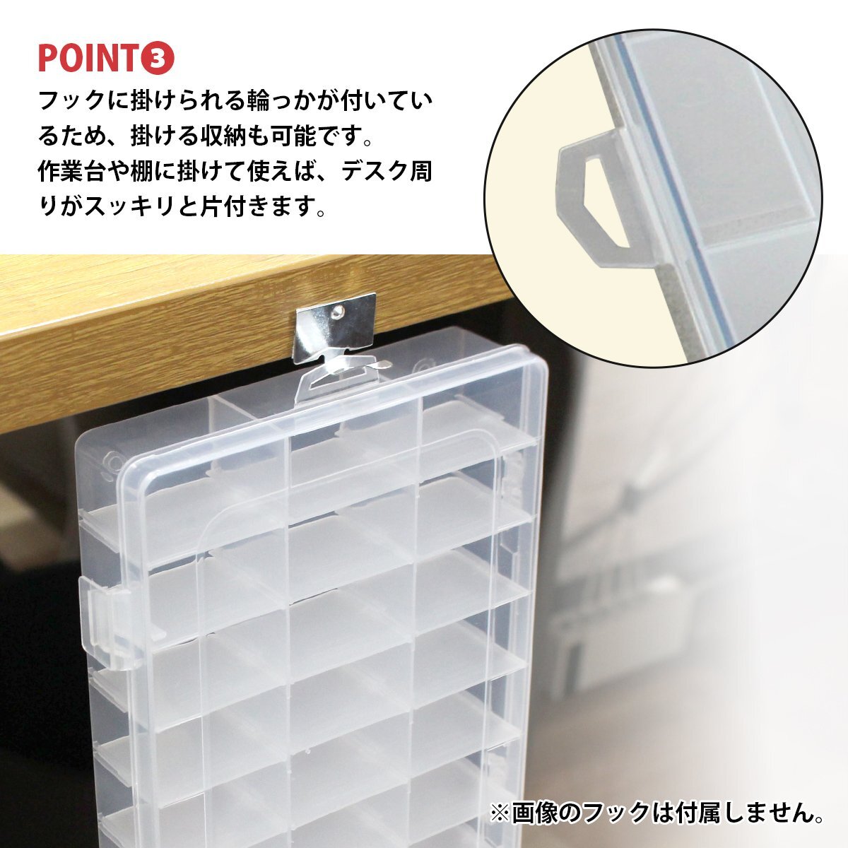 アクセサリーやコスメ、ハンドメイドのパーツ、釣具など、小物収納ケースとして幅広く活用できます。