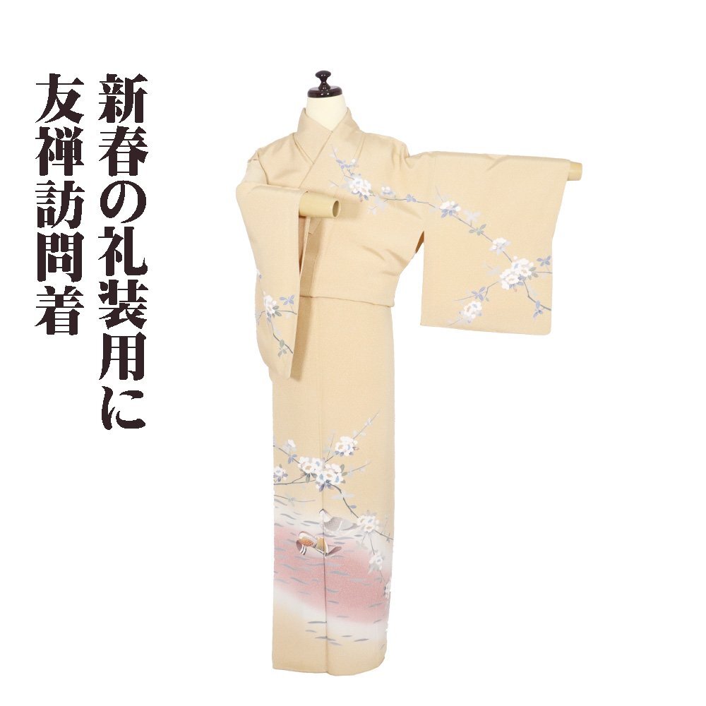 | 色・柄 | 友禅訪問着 袷 丹後縮緬地 オレンジ(香色)・オフホワイト(象牙色)・赤紫(韓紅色) ・暈し・時雨模様地 オシドリ・梅 (写真では上手く色が出ない場合があります。ご了承下さい) |