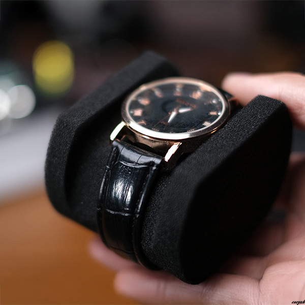 内部にはカスタムスポンジ枕を備えており、大小さまざまな腕時計をしっかりとホールドします。