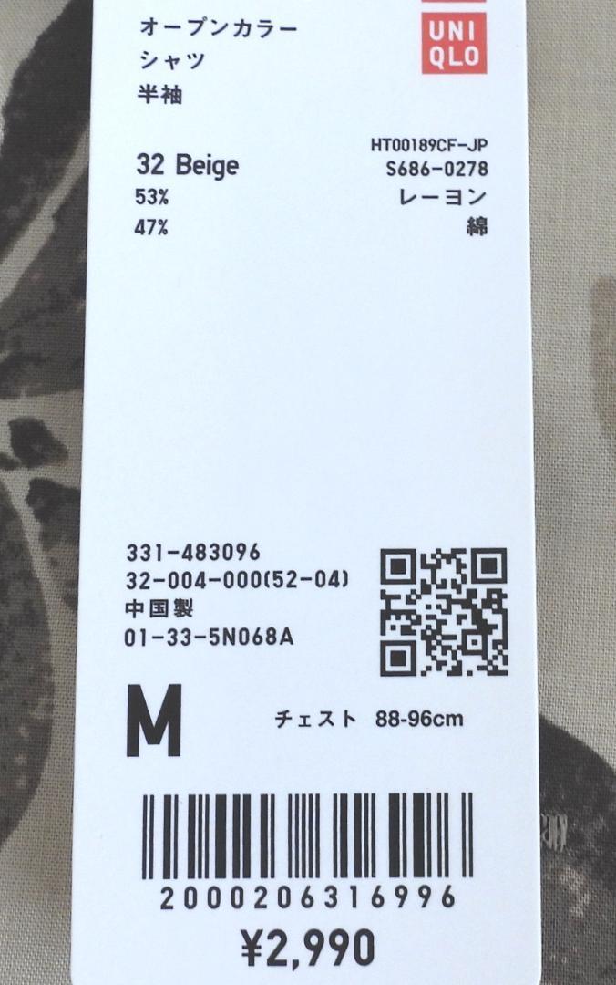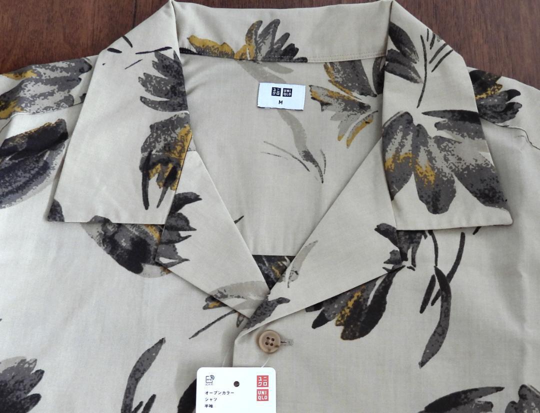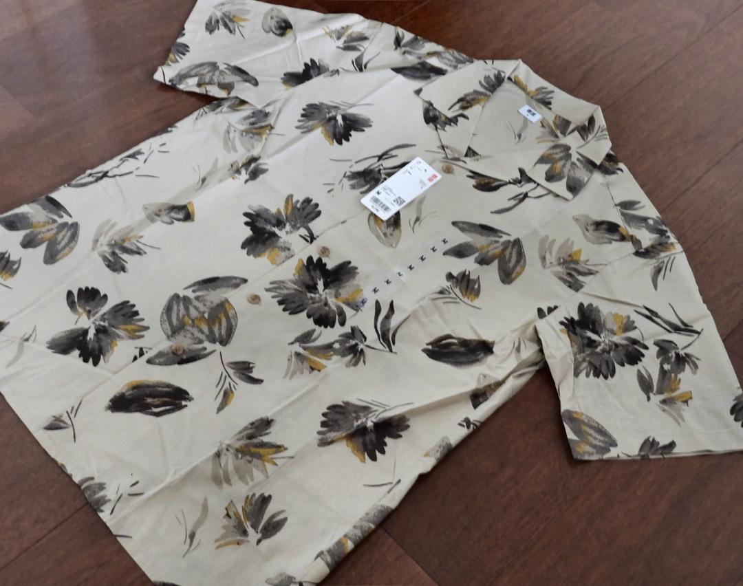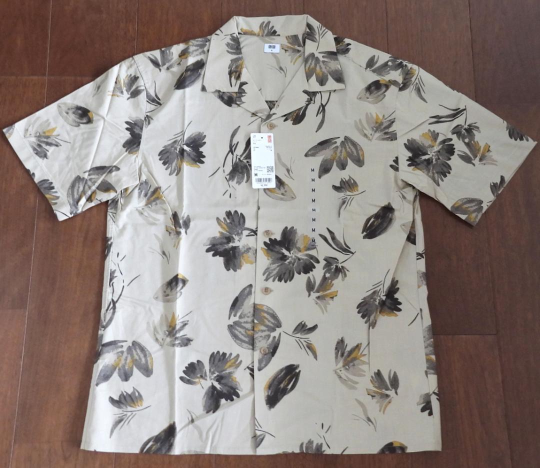ユニクロ UNIQLO オープンカラーシャツ プリント 半袖 メンズ Mサイズ ベージュ【新品未使用】
