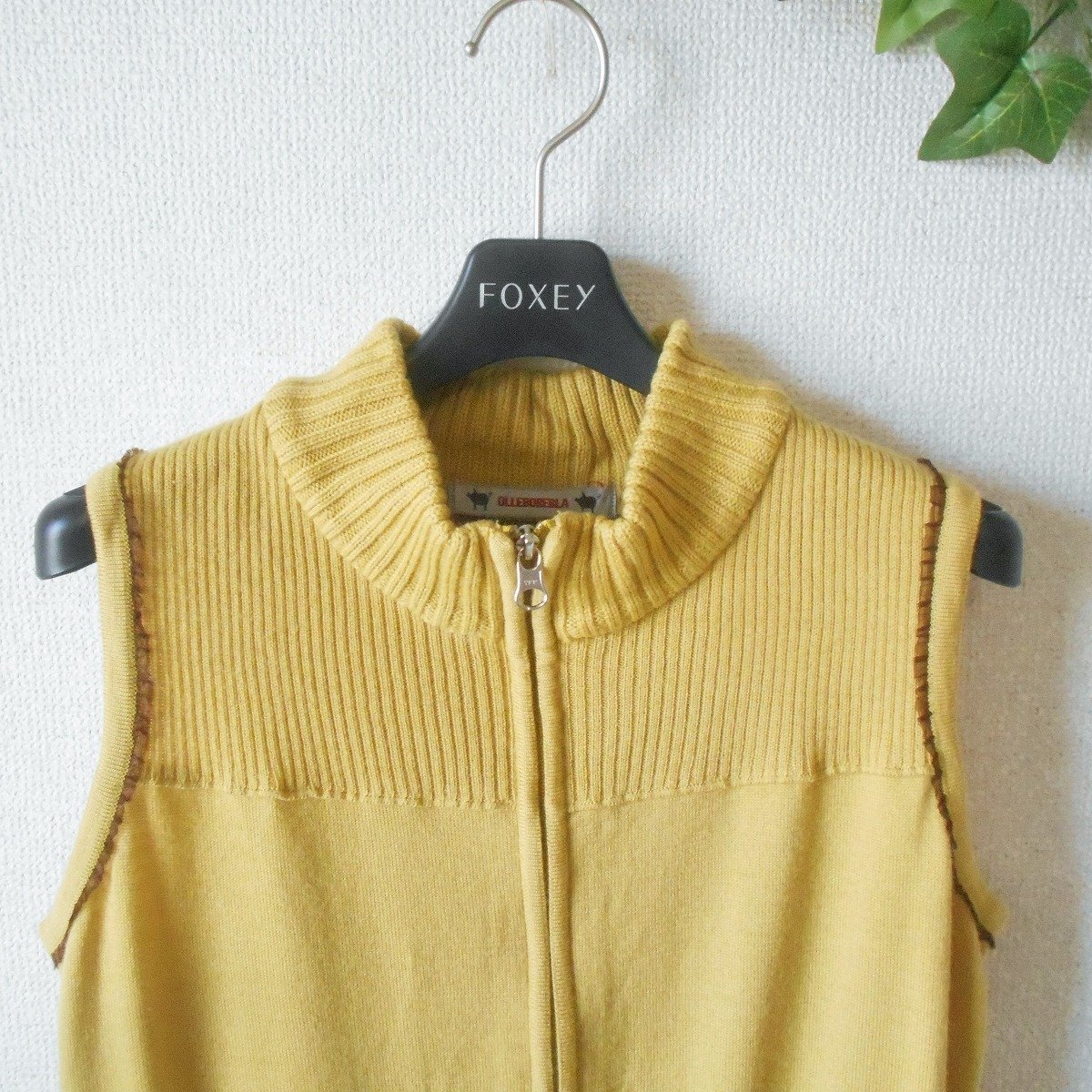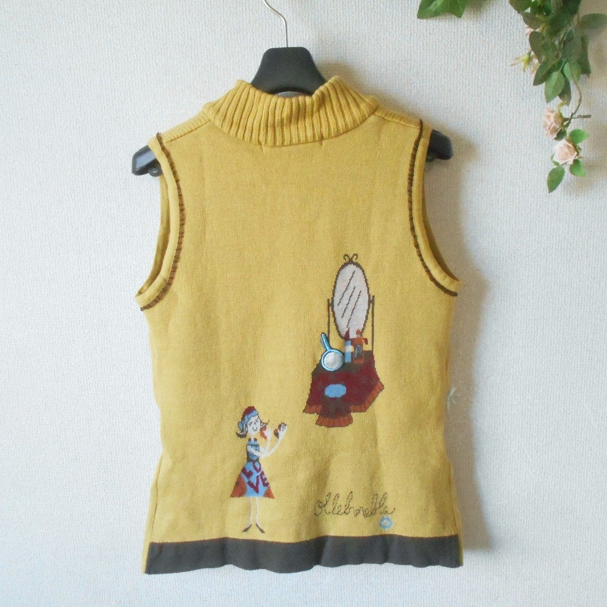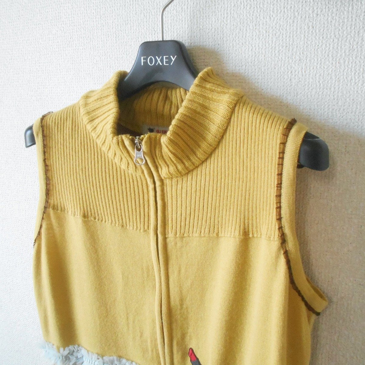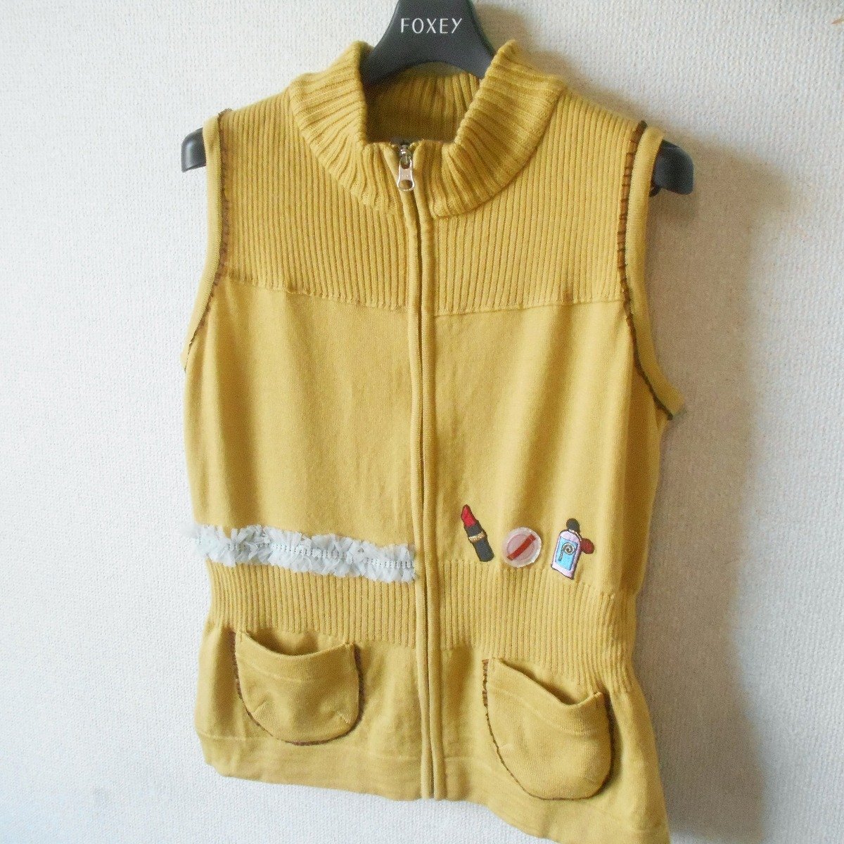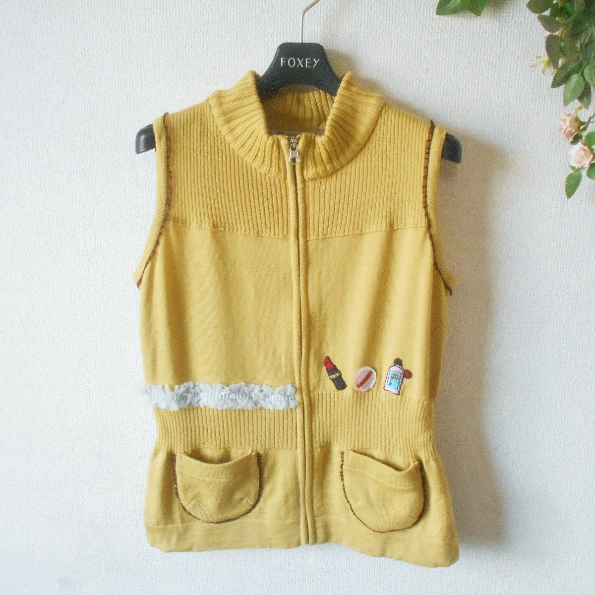 【ポイント】オレボレブラのジップアップベストになります。お色はマスタード系ベースでウール100%の秋冬を中心に着ていただけるお品です。ワッペンや刺繍、フリル等が使用された、とっても素敵なデザインです。