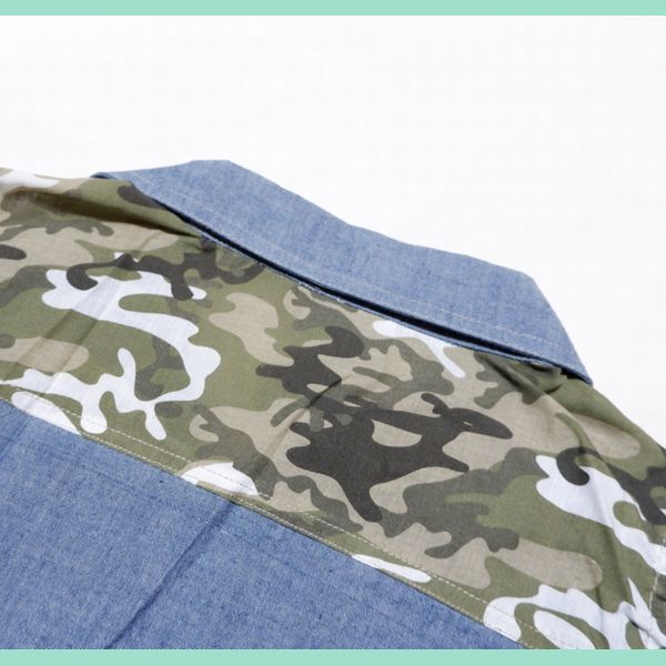 ・迷彩柄シャツ+Tシャツ+前開きチノパンツ