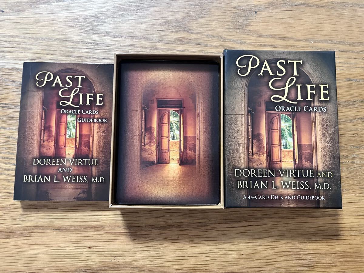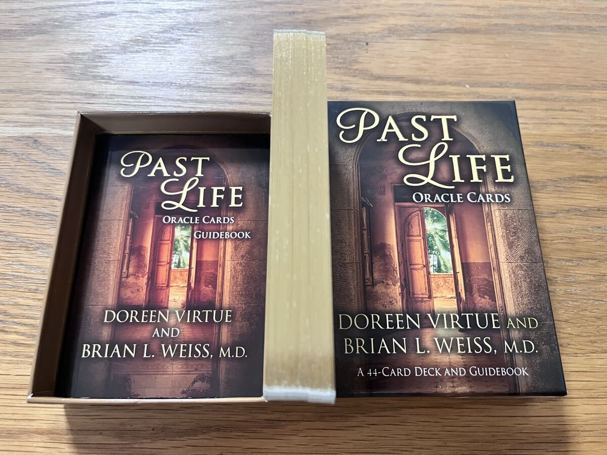 44枚のカードと英語版ガイドブックが含まれた過去生オラクルカード。金縁です。