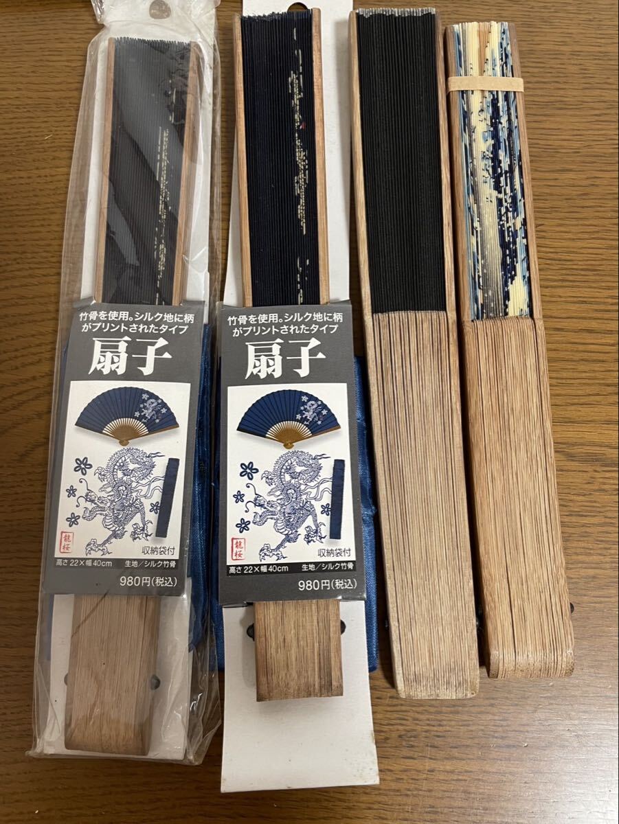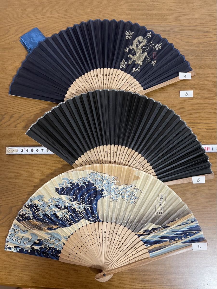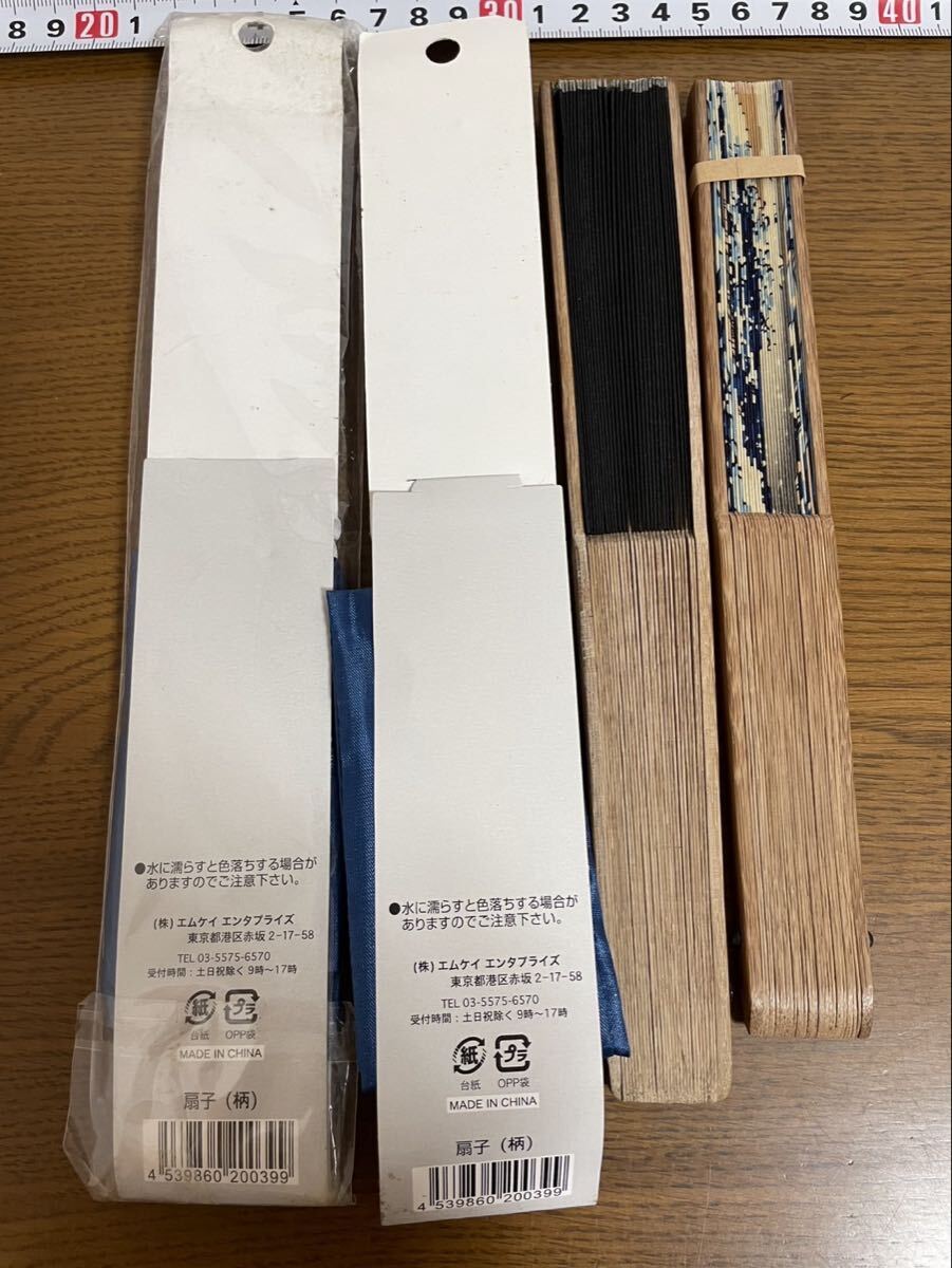 A-2本、B-1本、C-1本、計4本組。未使用ですが個々に袋に入っていない物、パッケージ汚れあり。またAの扇子上部に少し破れあり。