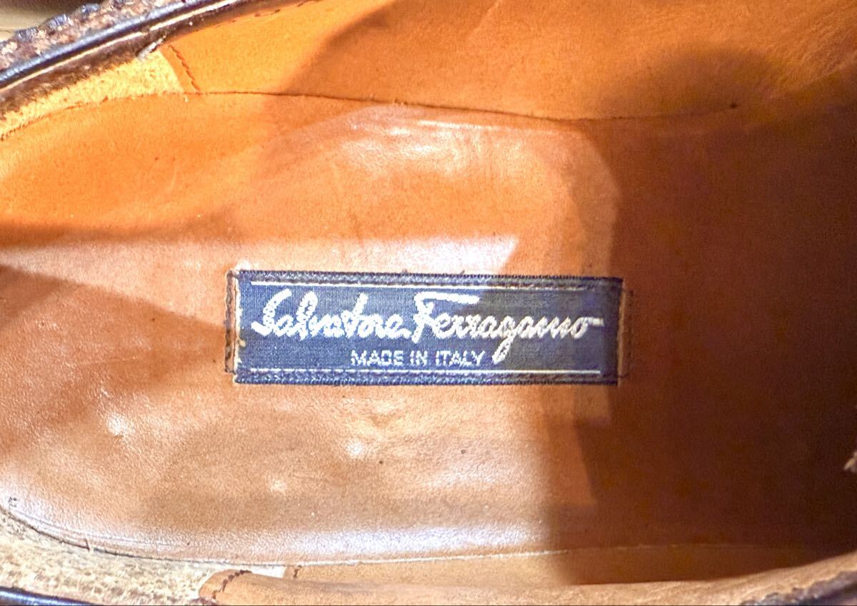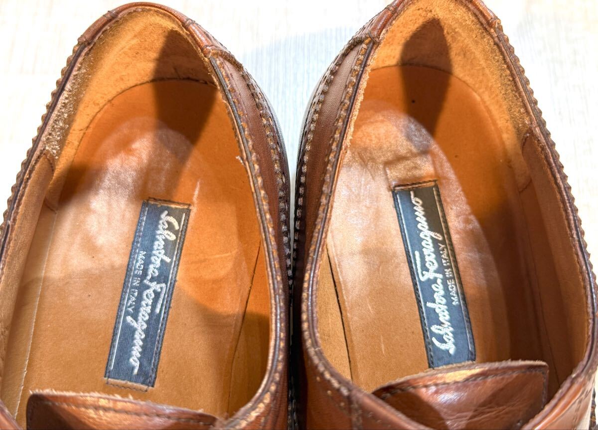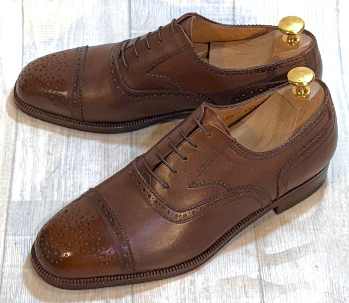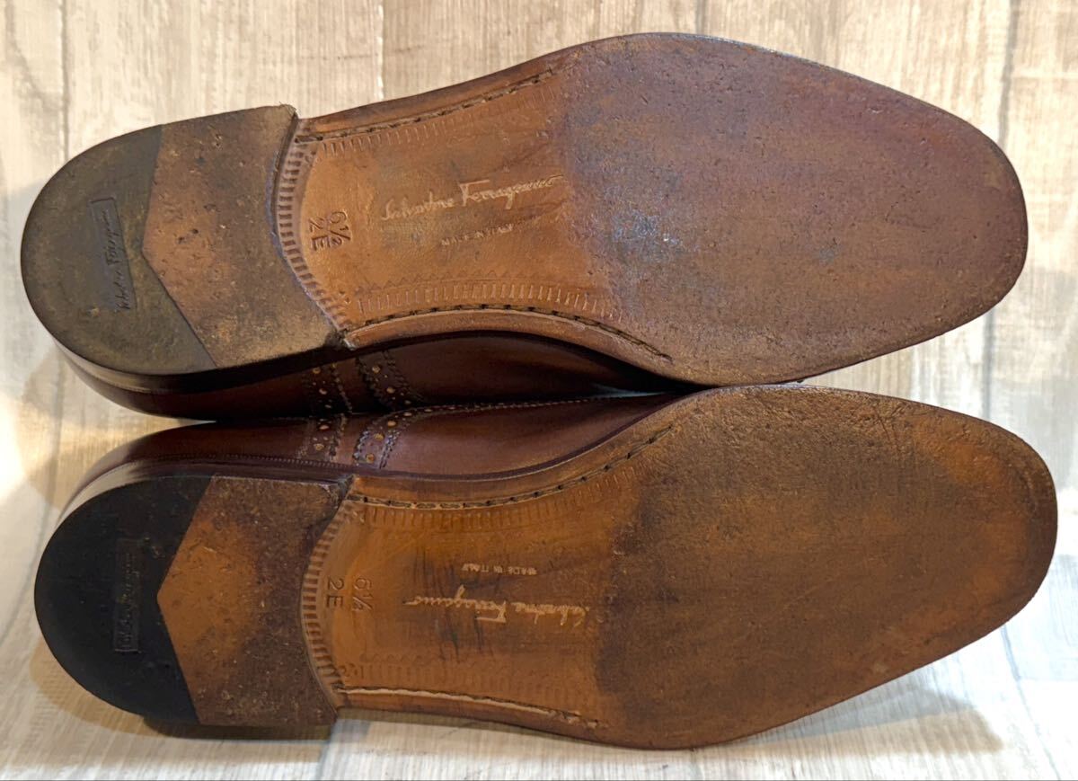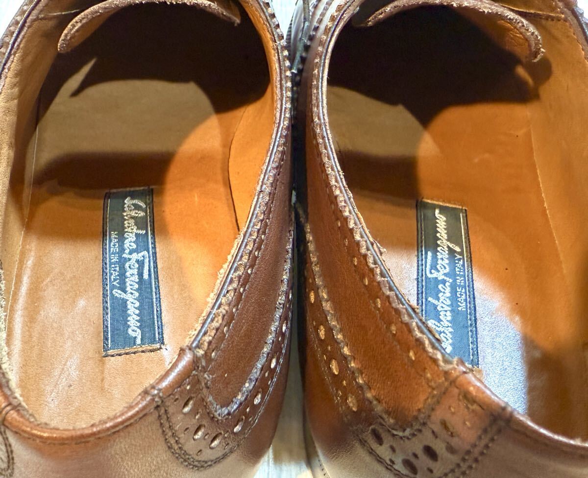 Salvatore Ferragamo フェラガモ◆24.5cm 6.5 2E◆セミブローグ ストレートチップ 革靴 本革 茶 ビジネスシューズ ドレスシューズ ITALY製