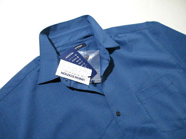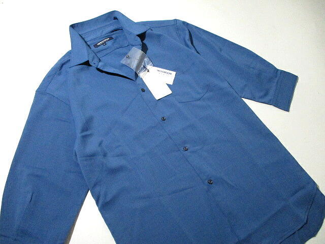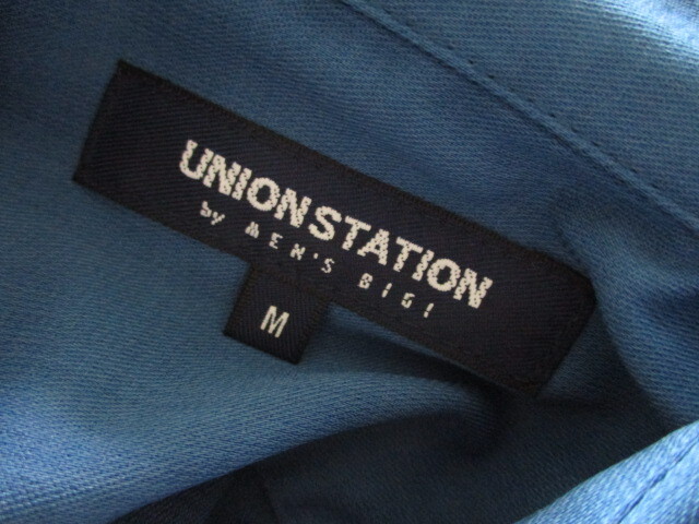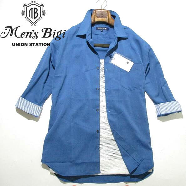 新品 未使用▼ 晩夏 メンズビギ 7分袖シャツ くすみブルー Mサイズ MEN'S BIGI UNION STATION 七分袖 吸水速乾
