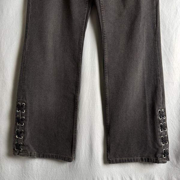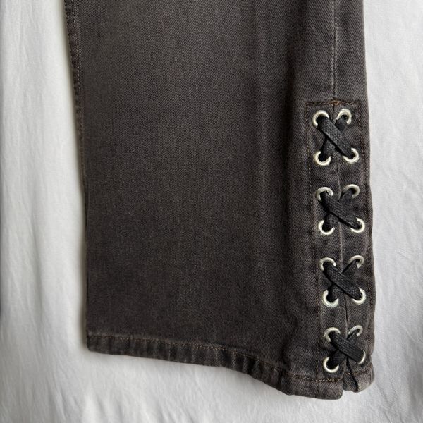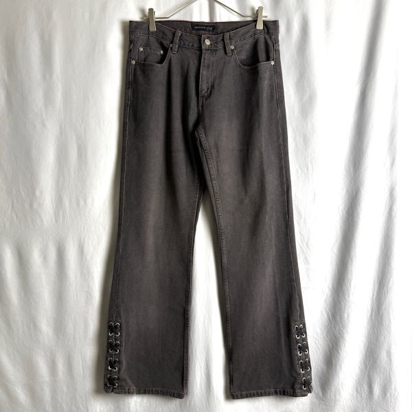 90s 香港製 KENNETH COLE デザイン ブーツカット ブラック デニム パンツ W32×L30 レースアップ フレア ケネスコール 00s ビンテージ