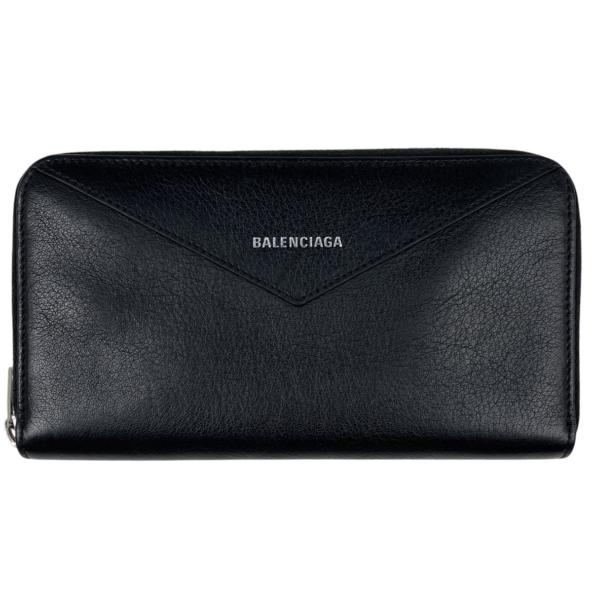 | バレンシアガ BALENCIAGA ペーパーコンチネンタル 長財布 ラウンドファスナー ロゴ 長財布 レザー ブラック 504547 レディース 【中古】 |