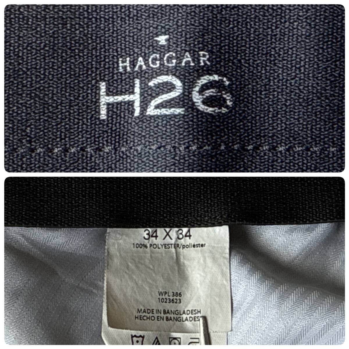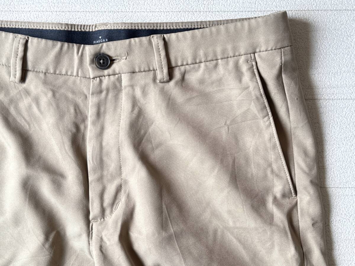 ☆送料無料☆ HAGGAR ハガー USA直輸入 古着 ポリ ロングパンツ トラウザー メンズ 34 カーキ ボトムス 中古 即決