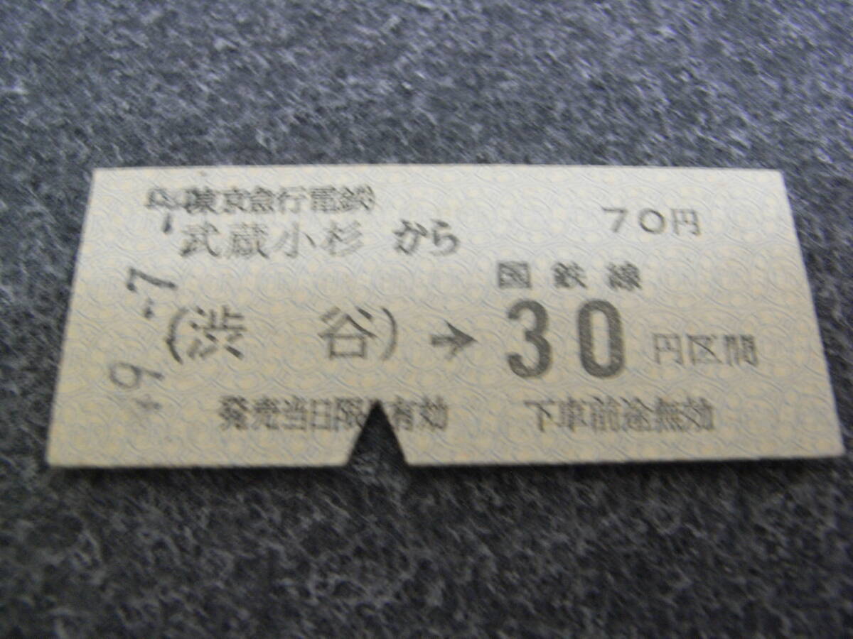 東京急行電鉄国鉄連絡乗車券 武蔵小杉から(渋谷)→国鉄線30円区間 昭和49年7月8日 武蔵小杉駅発行 東急