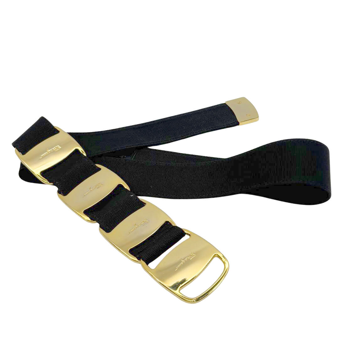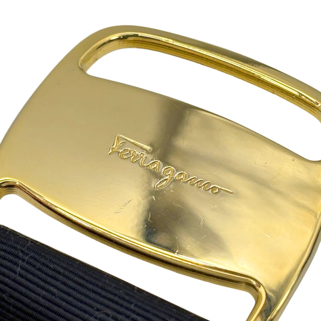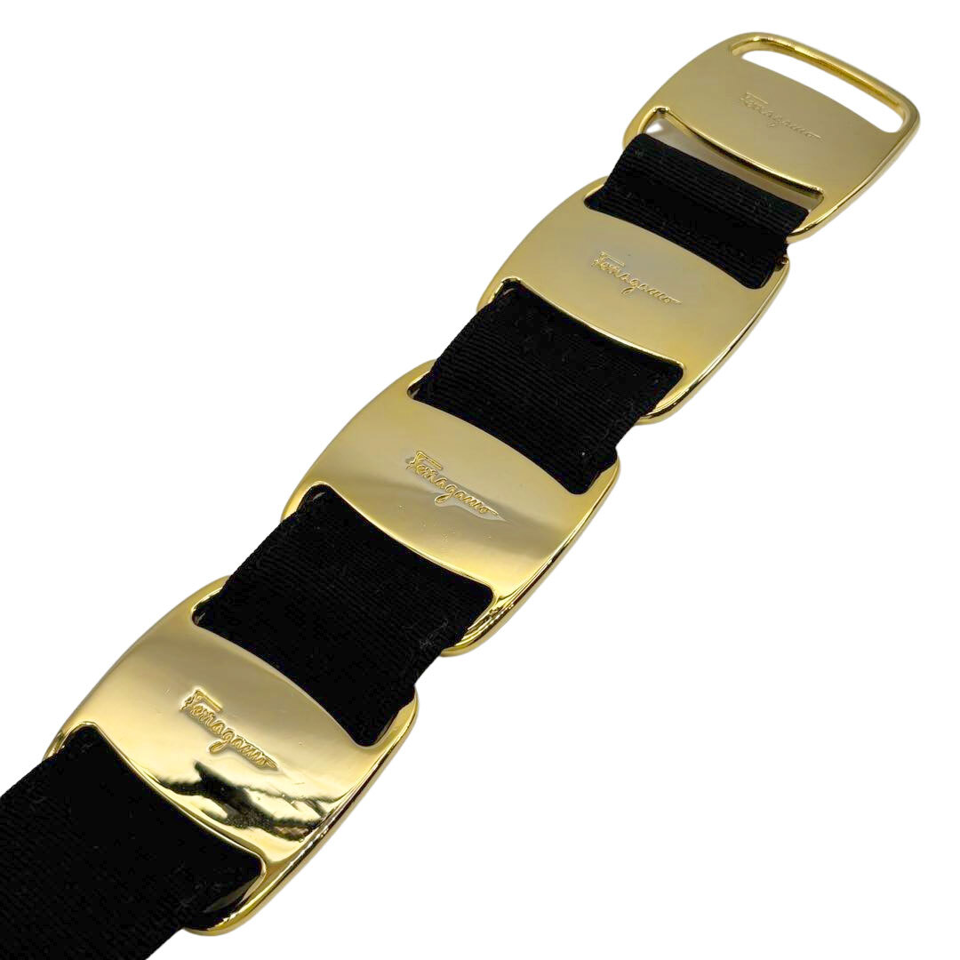| Salvatore Ferragamo サルヴァトーレフェラガモ ナイロンベルト 4連 ヴァラ金具 ブラック/ゴールド金具 |