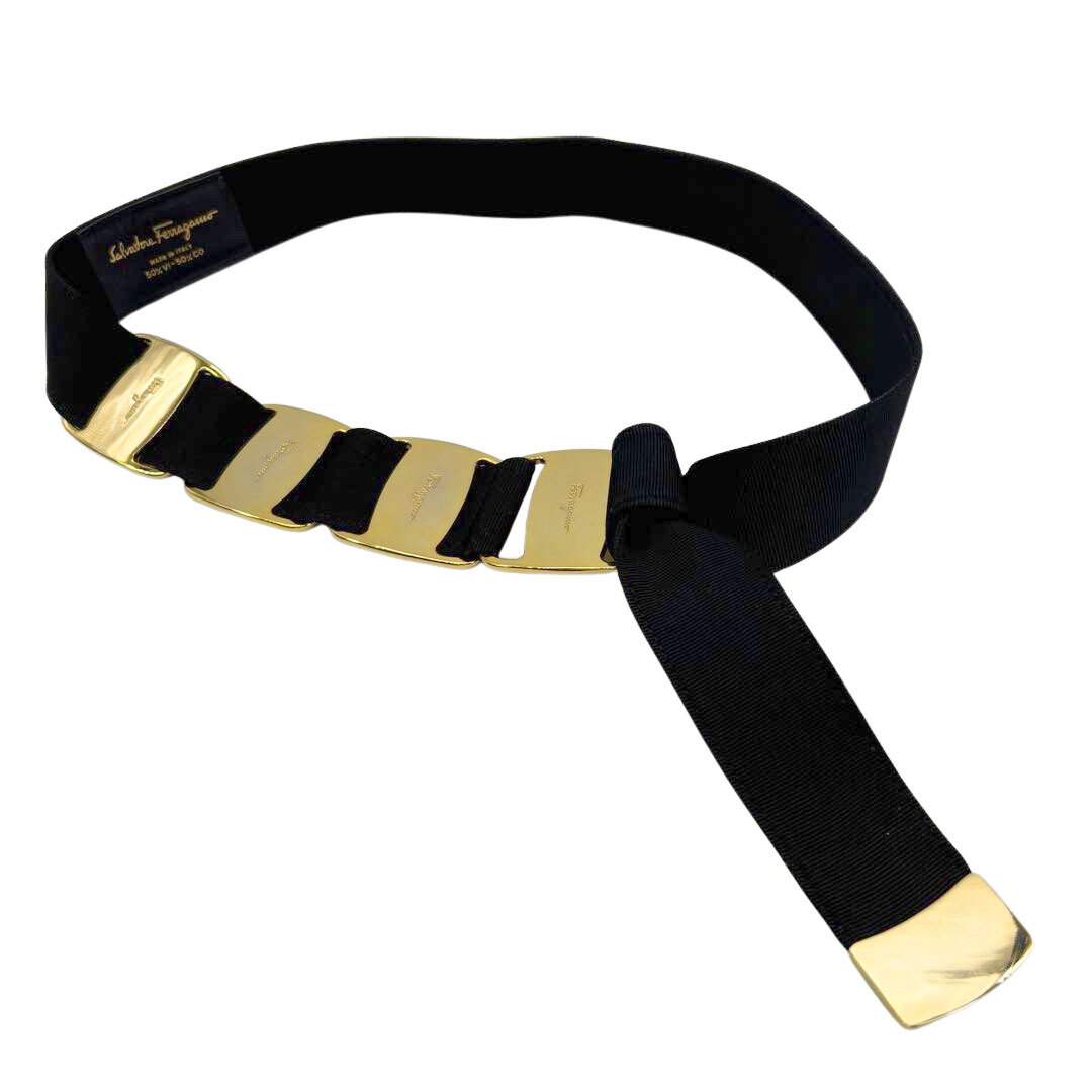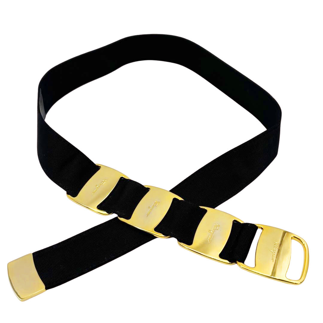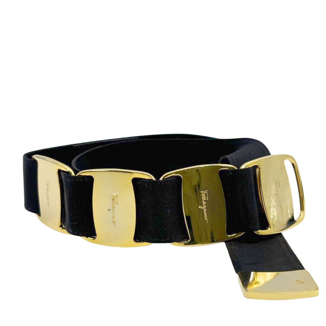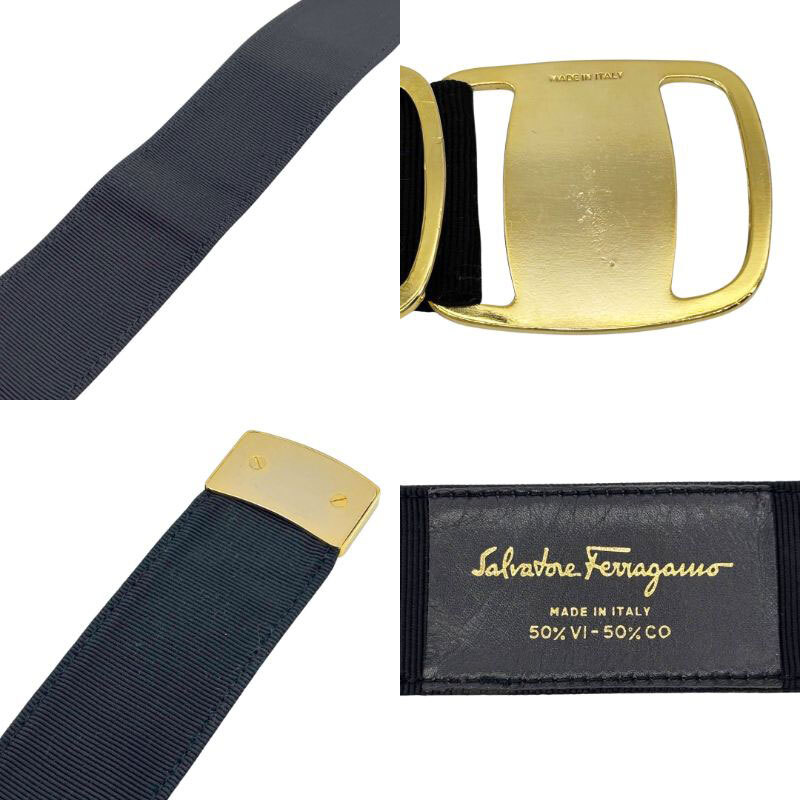 | Salvatore Ferragamo サルヴァトーレフェラガモ ナイロンベルト 4連 ヴァラ金具 ブラック/ゴールド金具 |