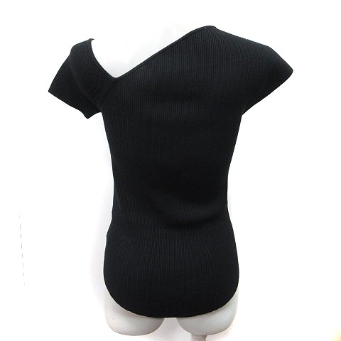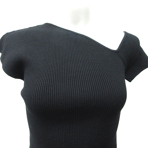 ラグナムーン LagunaMoon ニット カットソー リブ 半袖 F 黒 ブラック /YI レディース