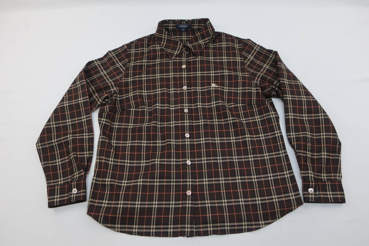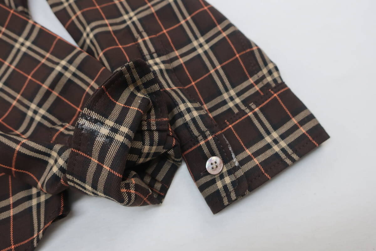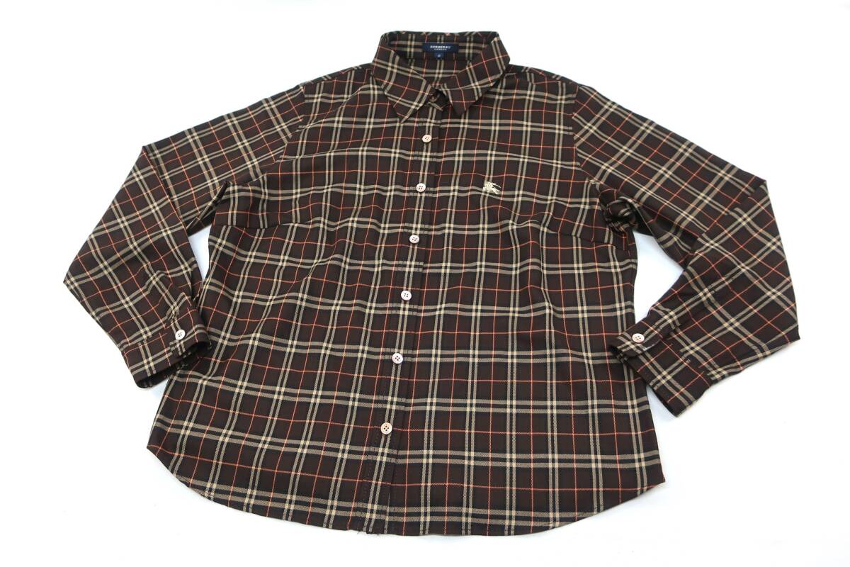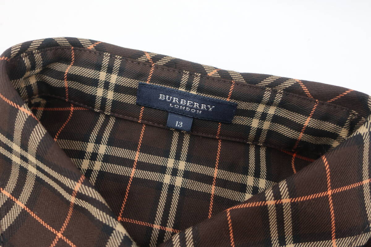 ★【S送900円】2612 BURBERRY LONDON バーバリー レディース スタンダードカラーシャツ 長袖 チェック 茶系 13 毛100% 三陽商会