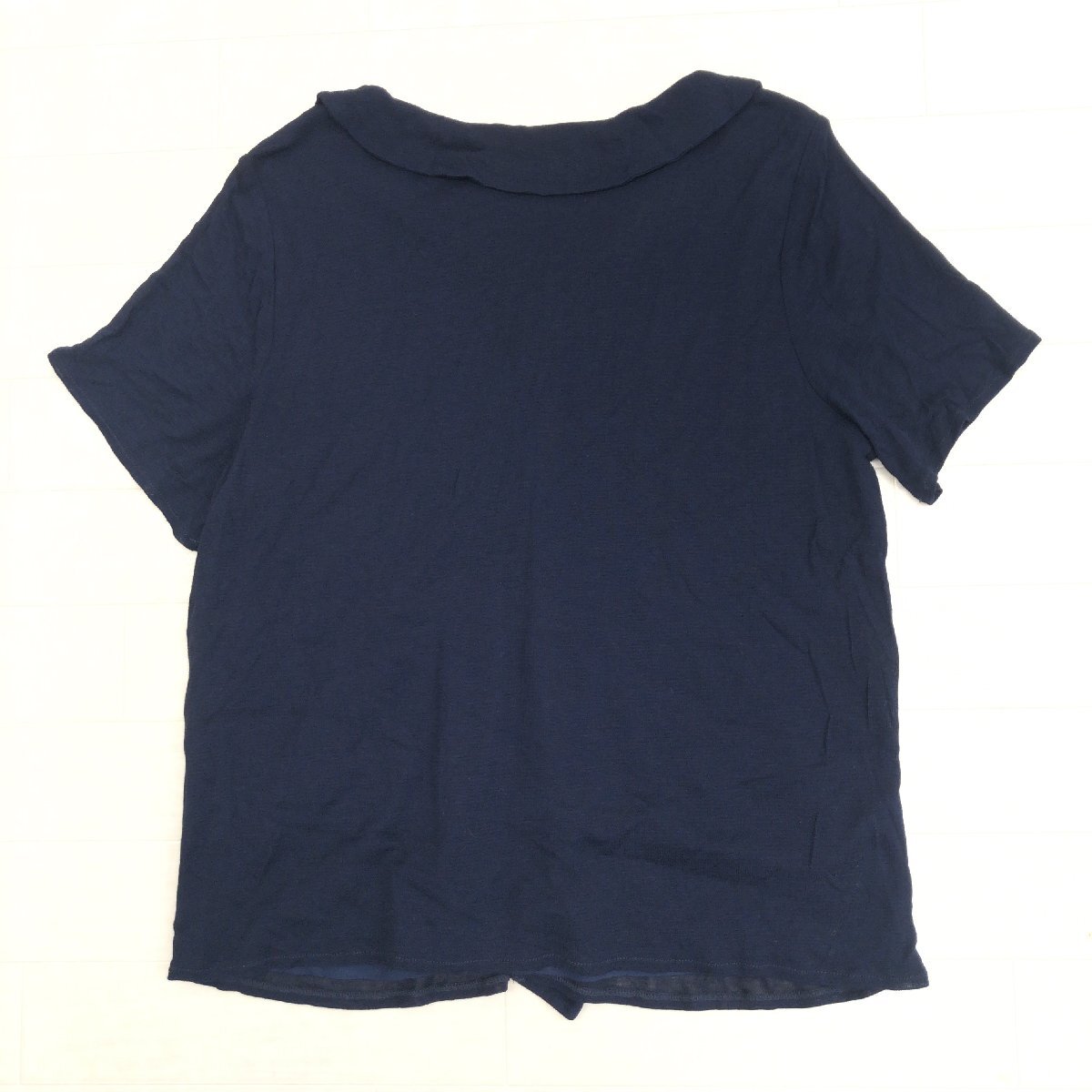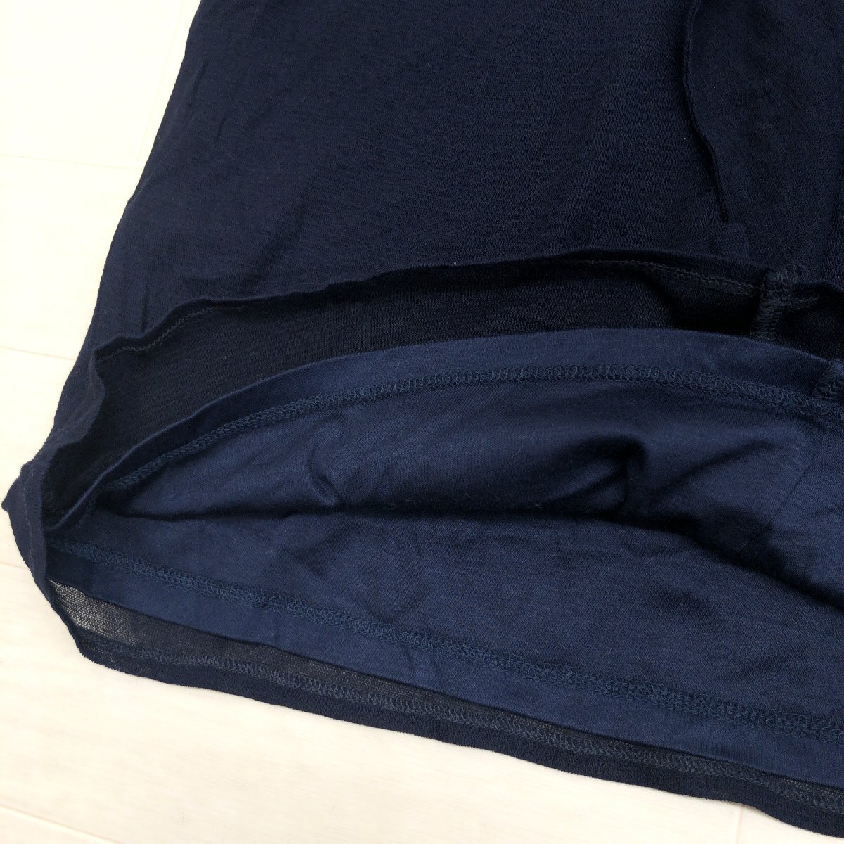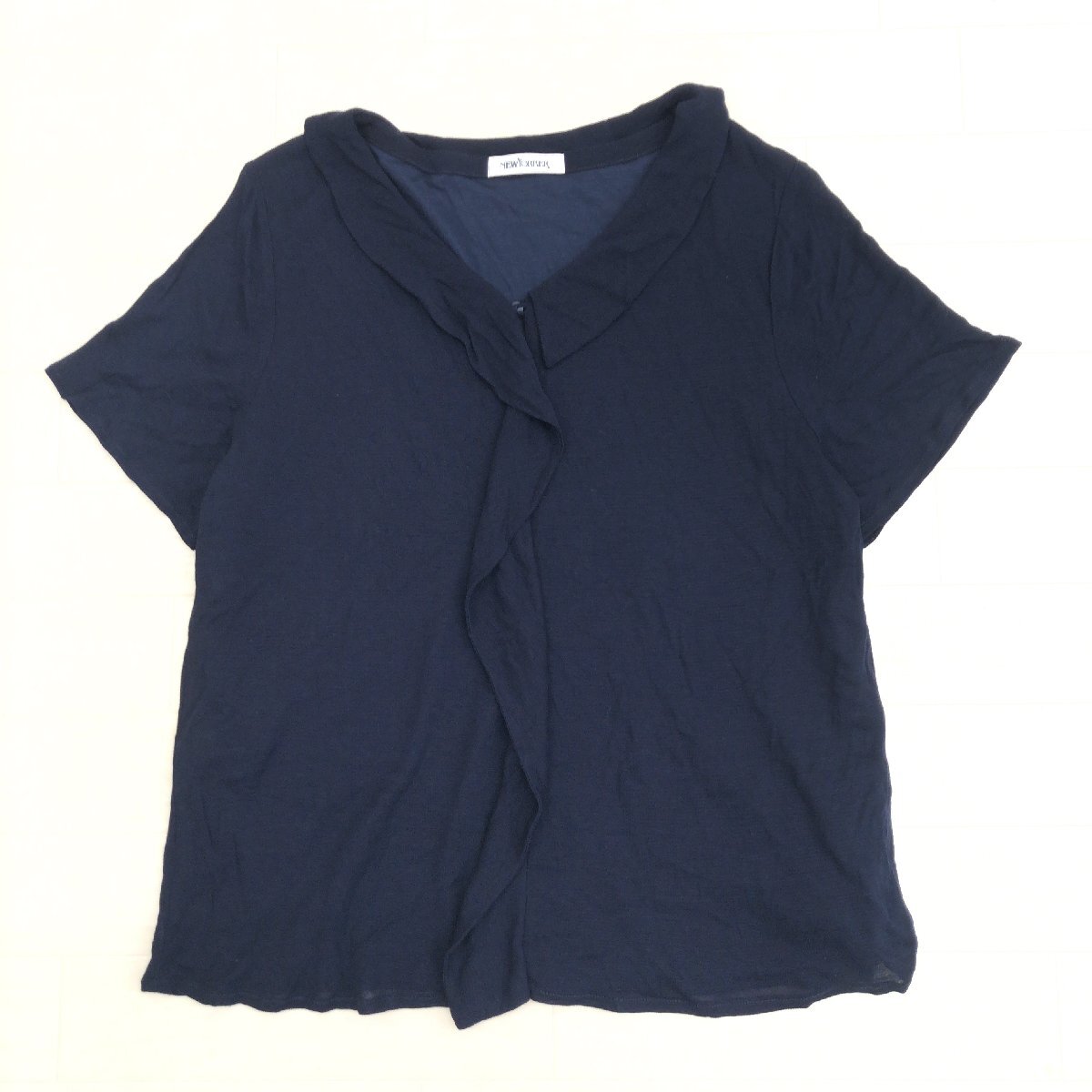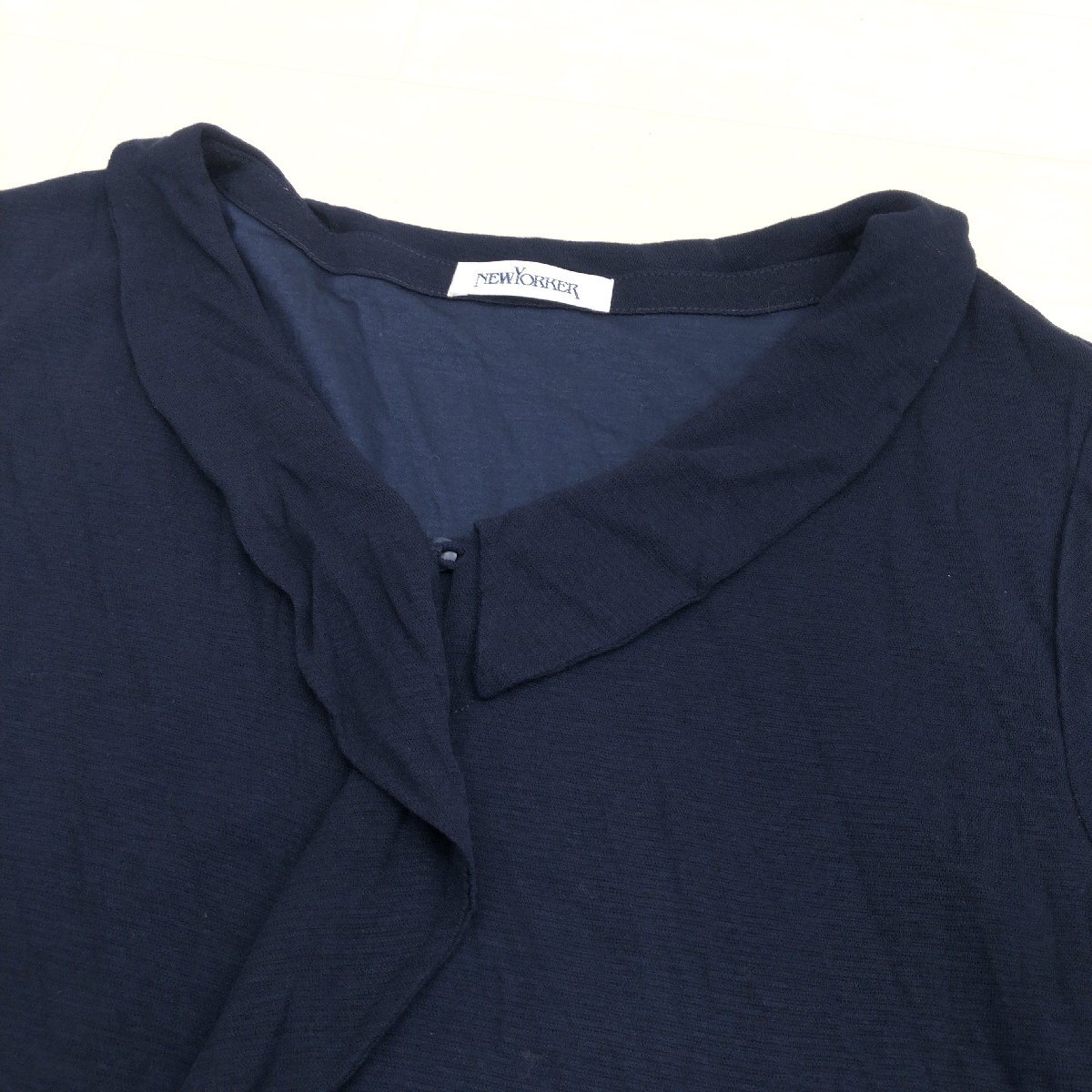 美品 NEWYORKER ニューヨーカー シアースリーブ レイヤード フリル カットソー 13(XL) 濃紺 ネイビー Tシャツ 半袖 LL 2L ゆったり 大きい