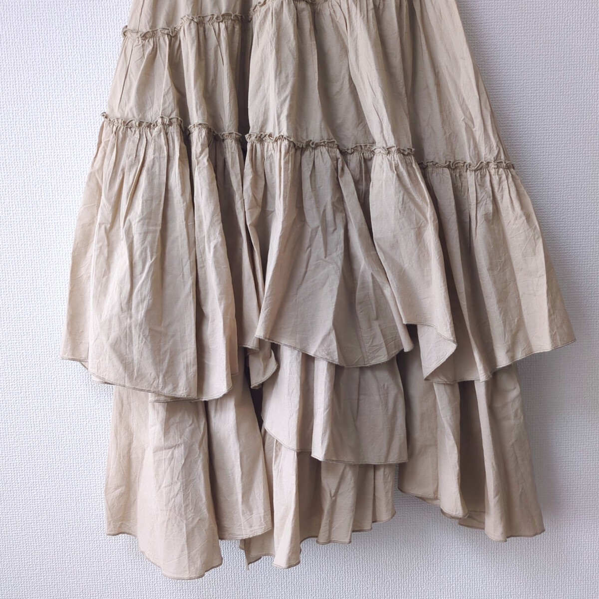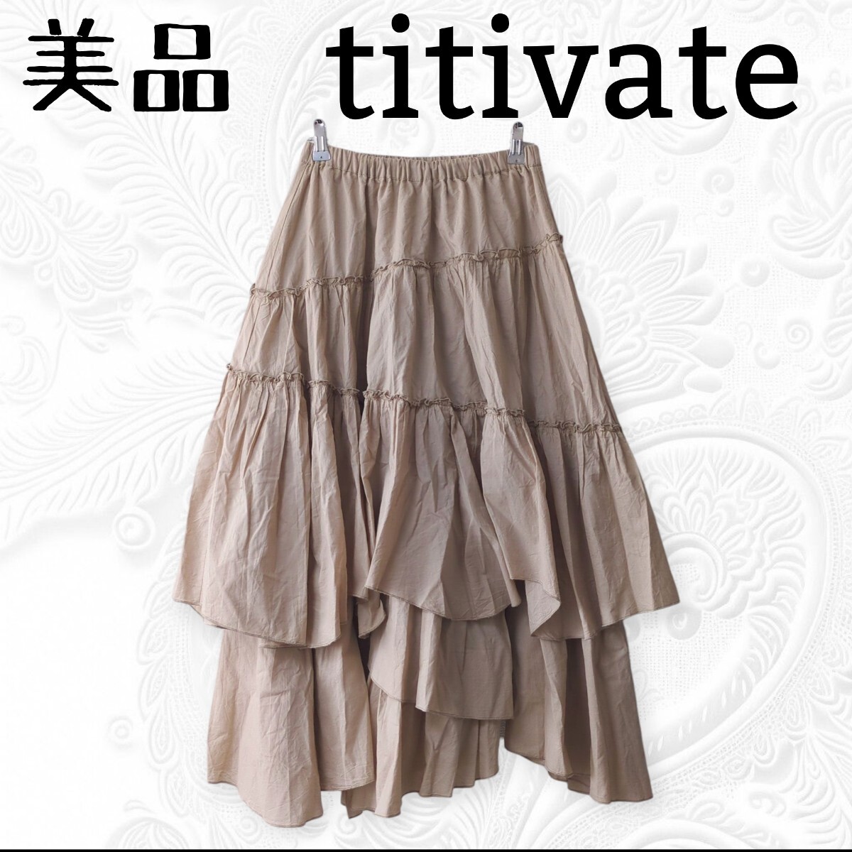 美品 titivate ティティベイト ティアードロングスカート 段スカート フリル ベージュ ウエストゴム