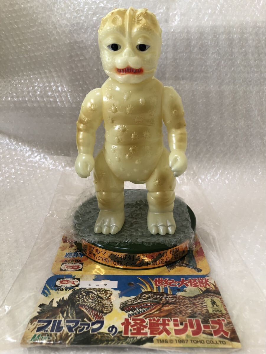 M1号 ブルマァク 復刻怪獣シリーズ 2002年 こどもの時代館限定 ミニラ 蓄光 金スプレー 台座付き ソフビ マルサン マーミット