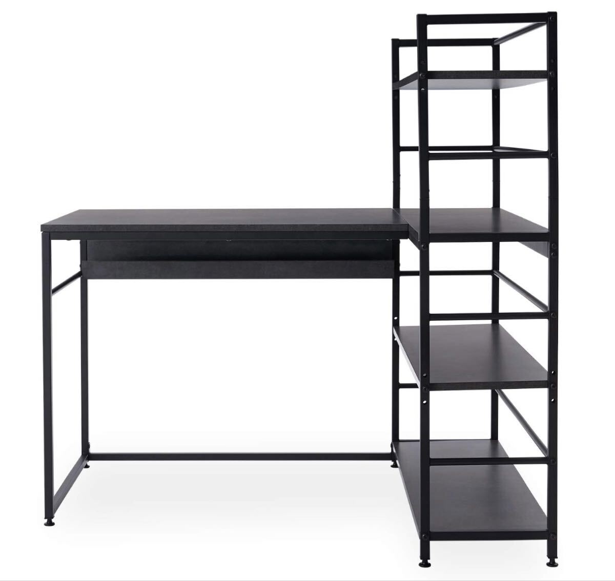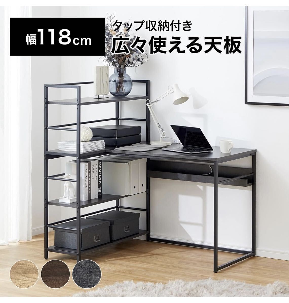 【佐川急便着払】未使用 LOWYA ロウヤ パソコンデスク 学習机 勉強机 コーナーデスク l字 デスク 本棚付き 収納付き ワークデスク ウォールナット ブラック NEWハブテイル No.※i1※