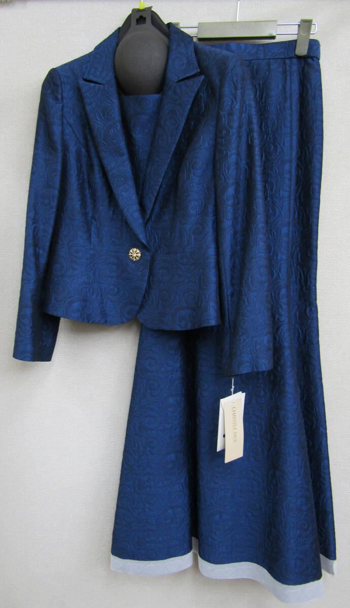 CHANTEZ MOI、カラー2ピース、ジャケットとロングフレアースカート、7号、紺系、地柄織生地、未使用品、¥220000のお品、です。