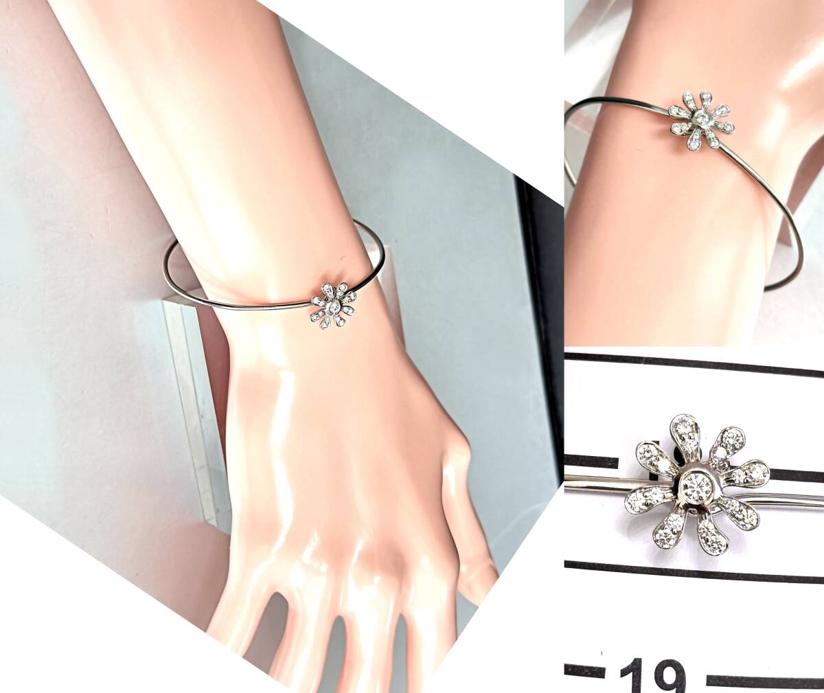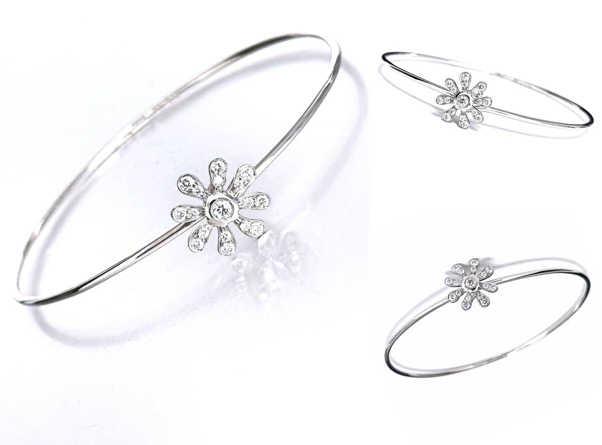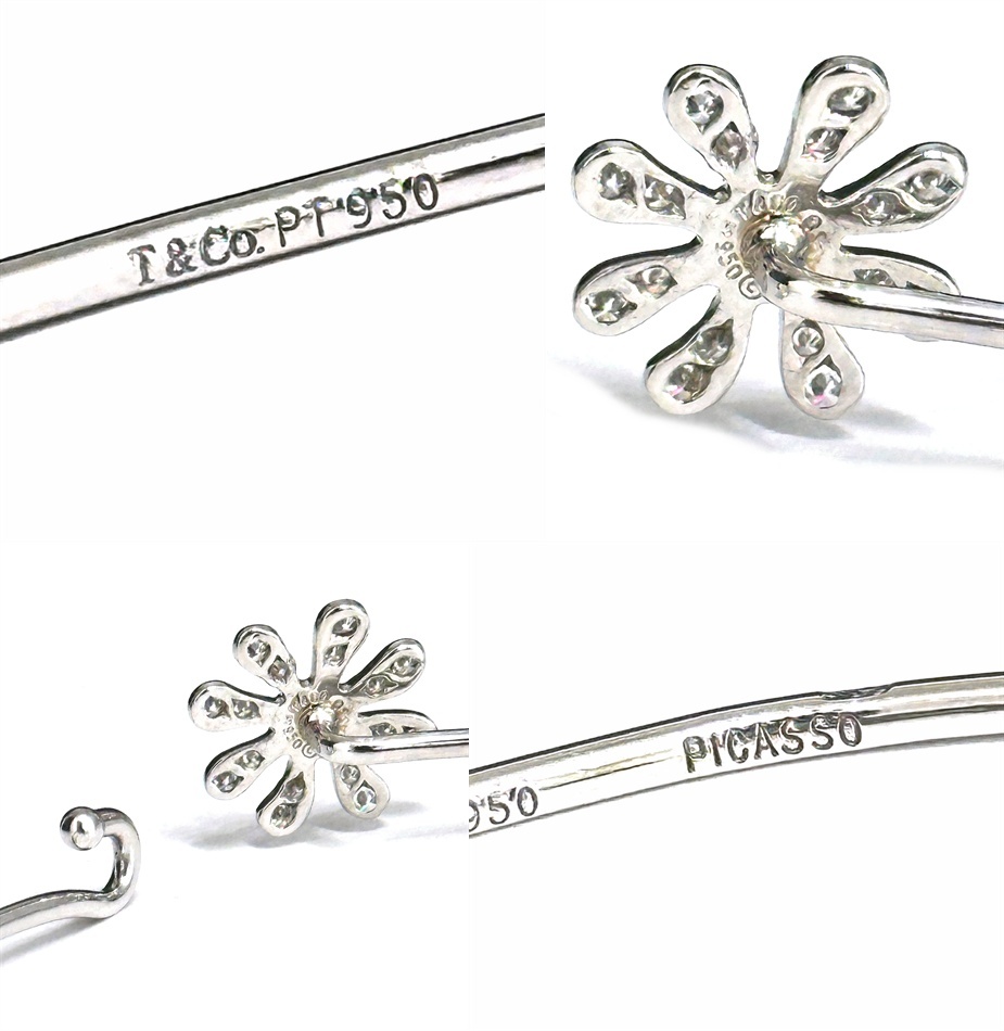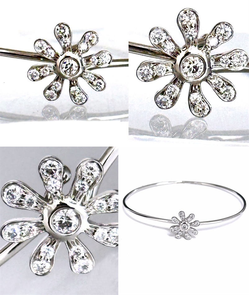 美品 レア TIFFANY ティファニー デイジー ダイヤモンド ブレスレット プラチナ バングル 17P 花びら フラワー ブレス 希少