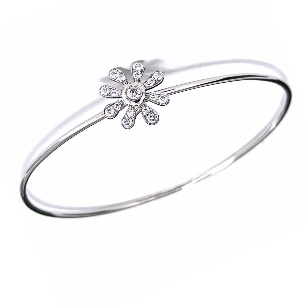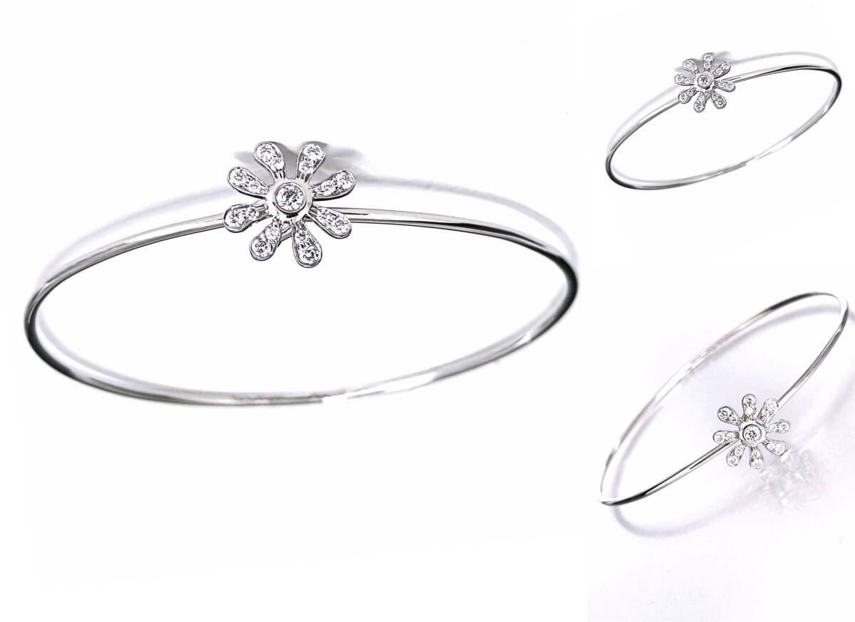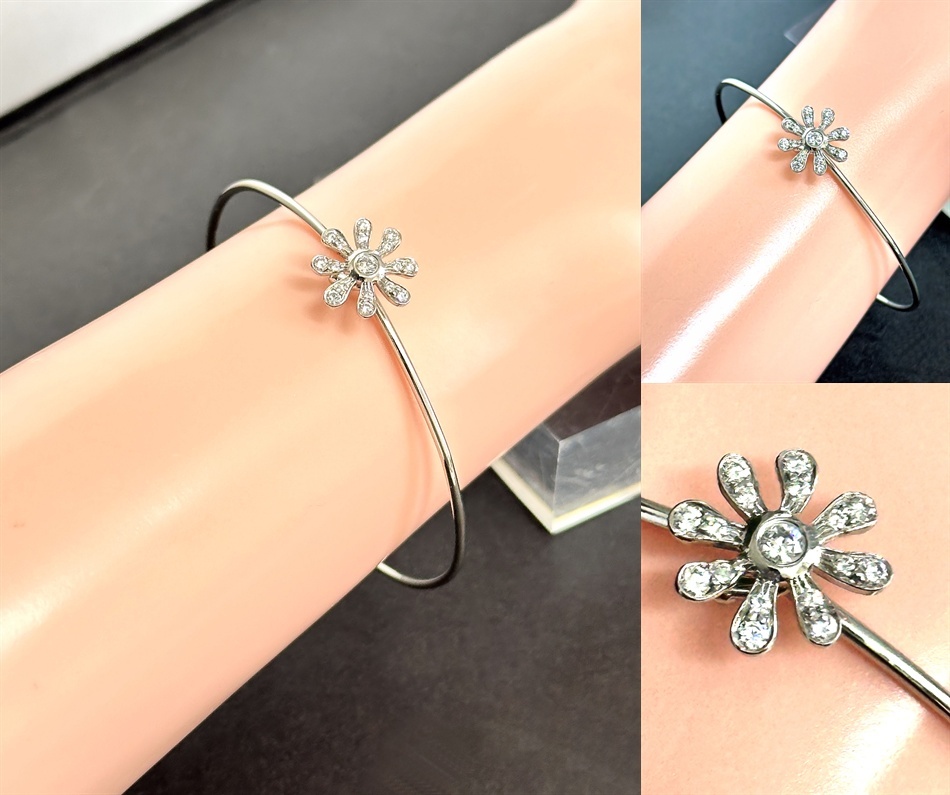美品 レア TIFFANY ティファニー デイジー ダイヤモンド ブレスレット プラチナ バングル 17P 花びら フラワー ブレス 希少
