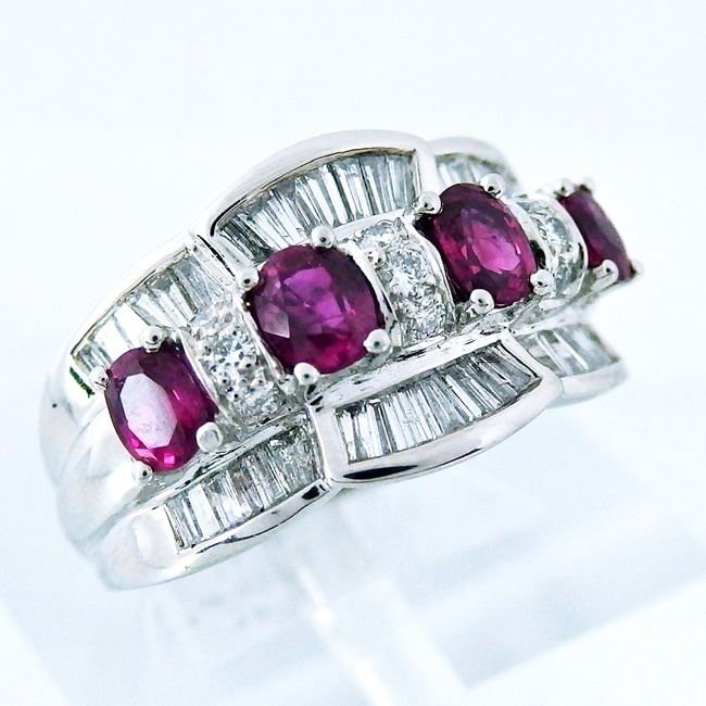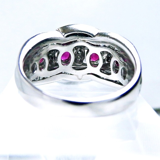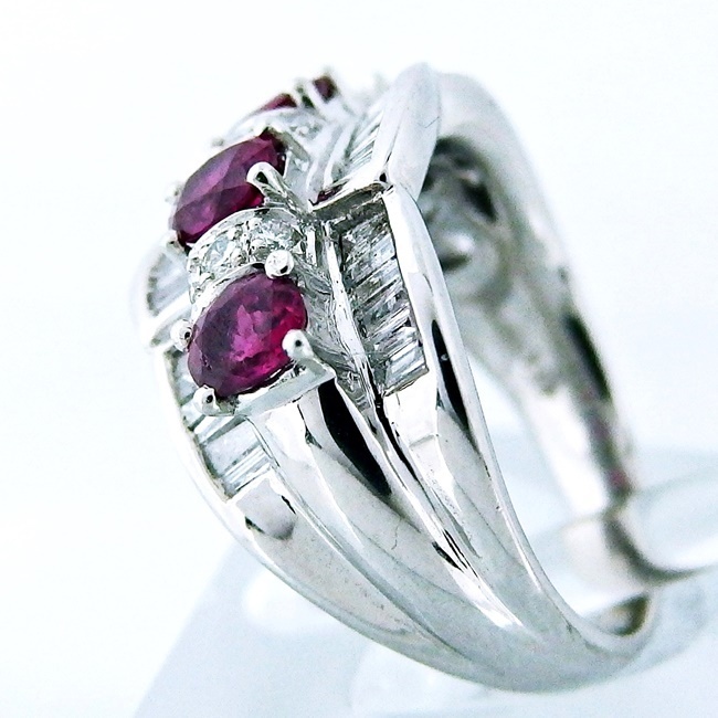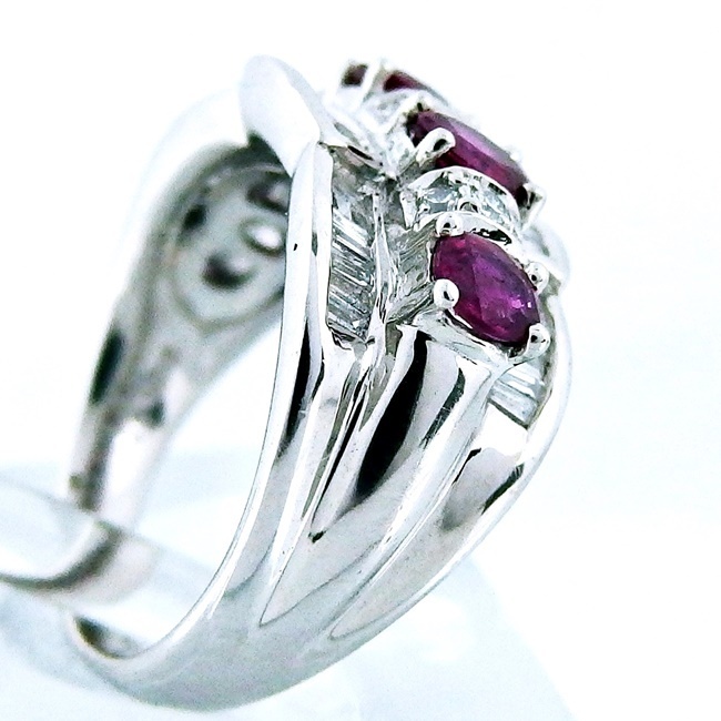 *Pt900 *ルビー:1.17ct サイズ:約3~4ミリ *ダイヤモンド:0.83ct *リングの幅:約3mm~13mm *リングの立ち上がり:約4.6mm *リングのサイズ:13号 *重さ:12.6g *付属品:ソーティング *ランク:A ※もっと細かい状態につきましては、お気軽 にお問い合わせください。 RR ∞ 24988 10001690