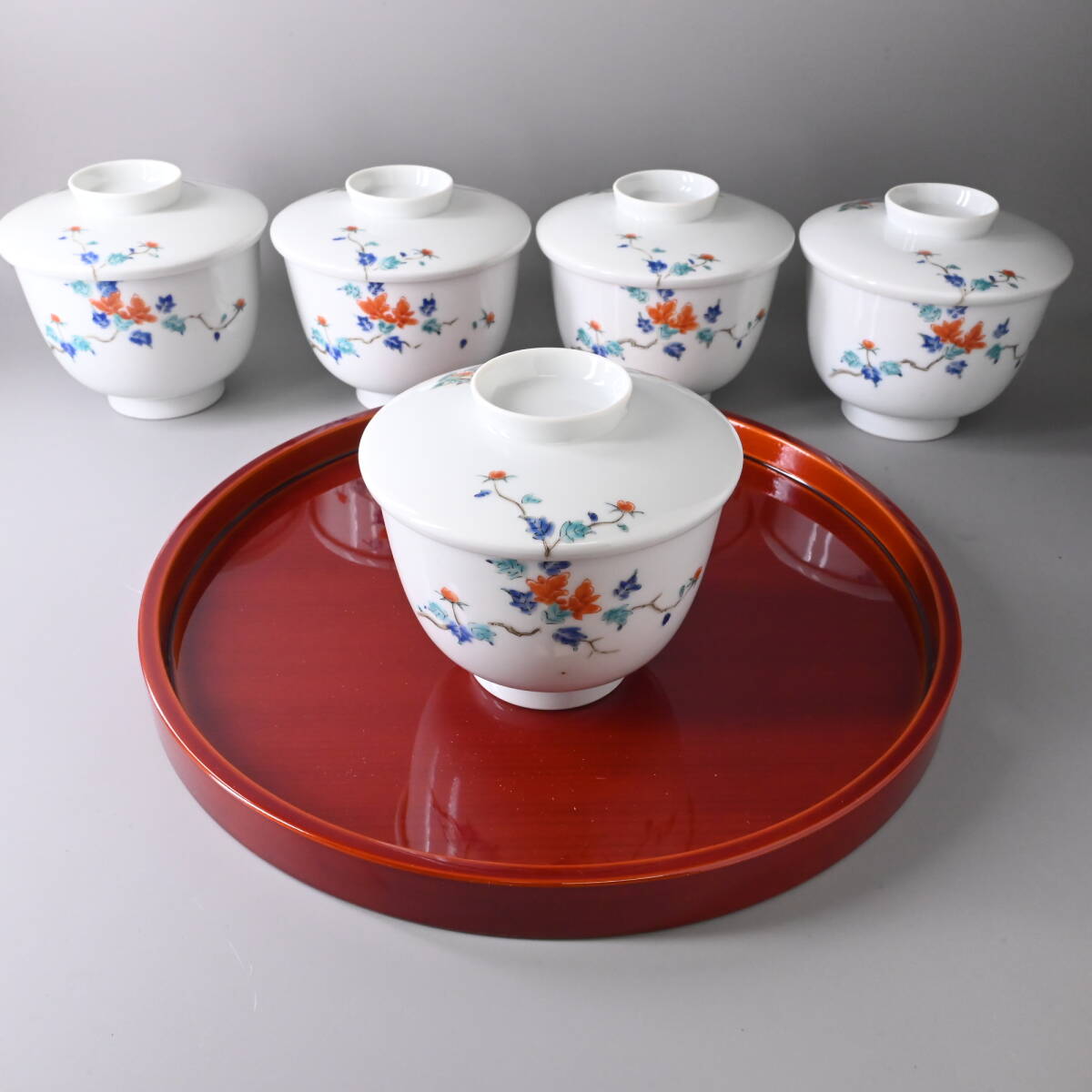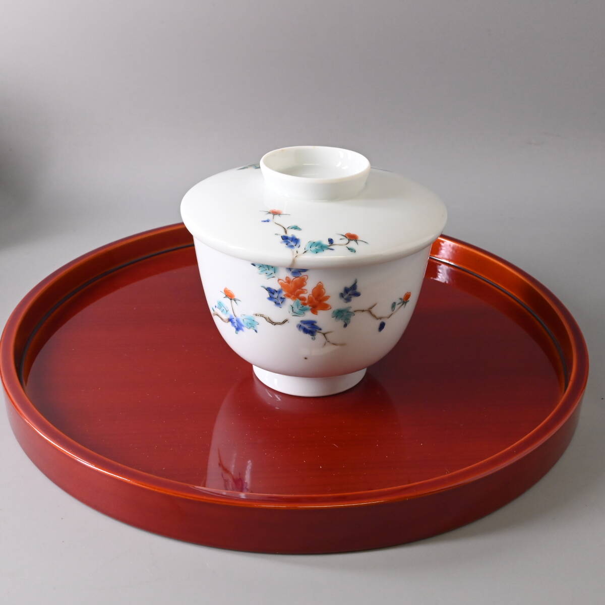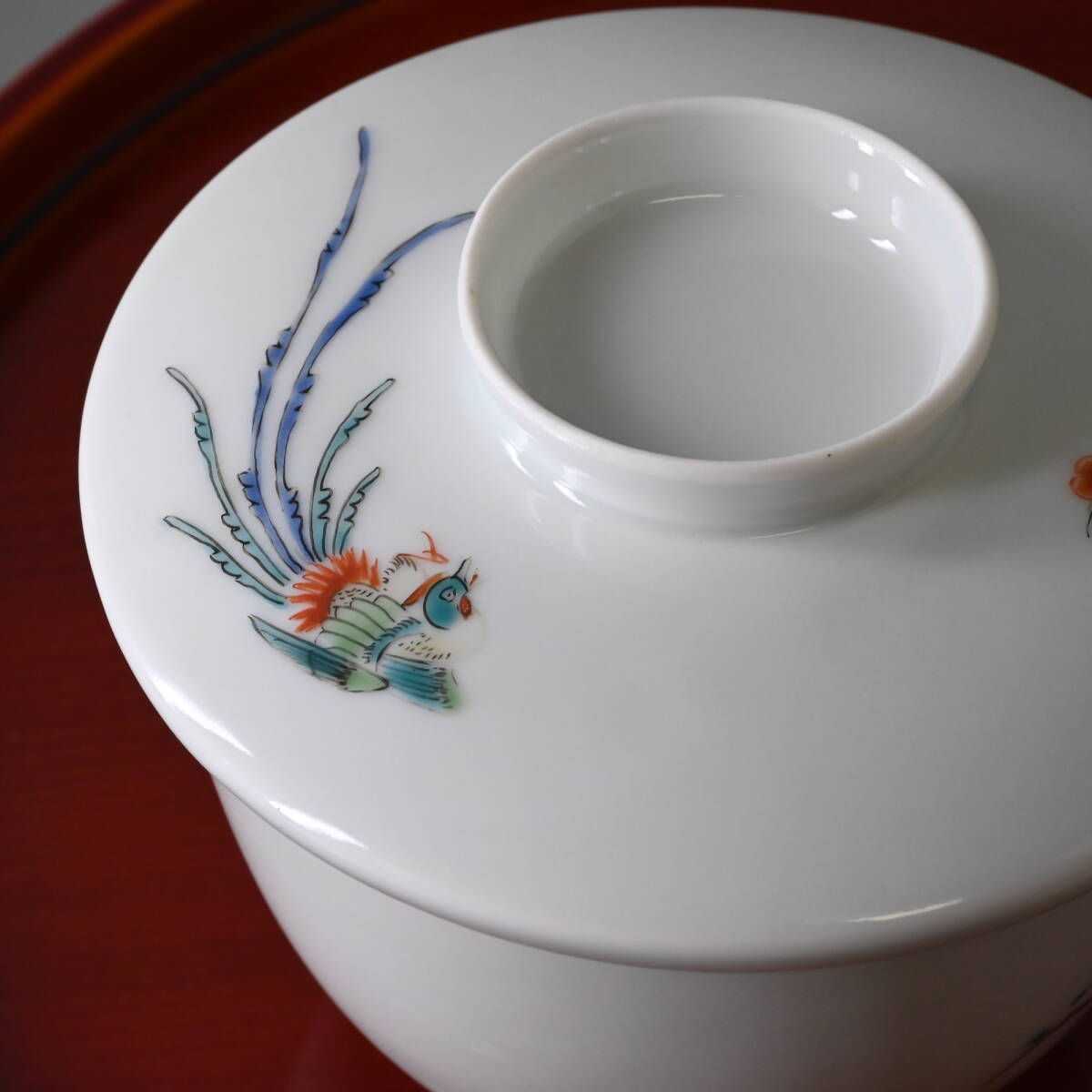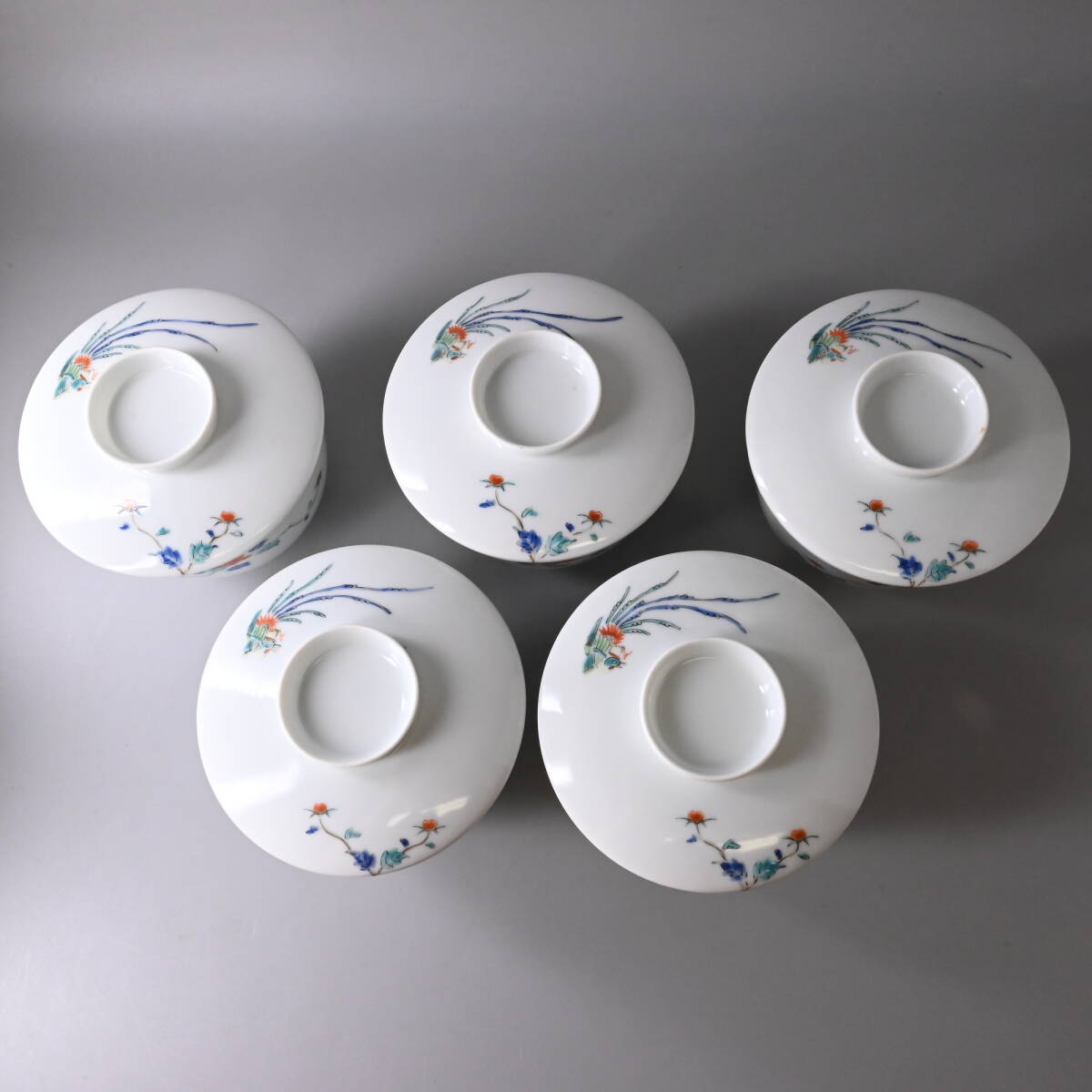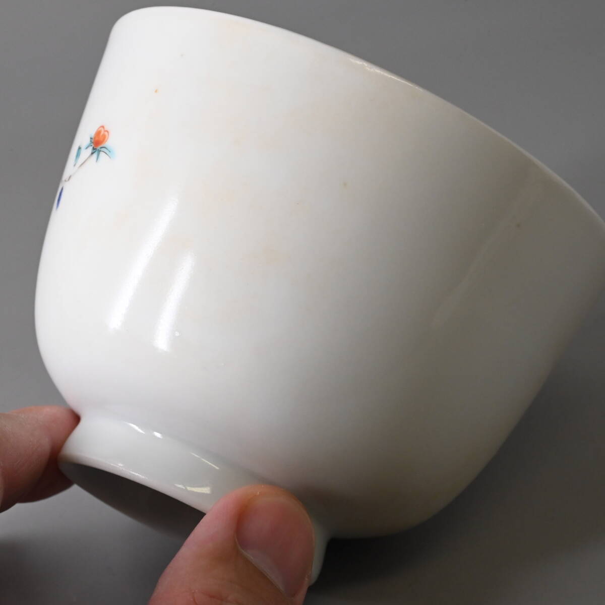 商品説明 | 状態: 中古 説明: 柿右衛門の蓋物飯椀です。 草花や鳳凰の描きこみが美しく、なかなか見飽きません。 一客は残念ながら黄ばみがあります。 それ以外は窯キズのほか、一部の色絵(枝)が落ちていますが、 気兼ねなく普段使いできるという点では良いかと思います。 その他、写真から状態をご確認いただき入札ください。 サイズ: ・80サイズ 付属品: ・なし |