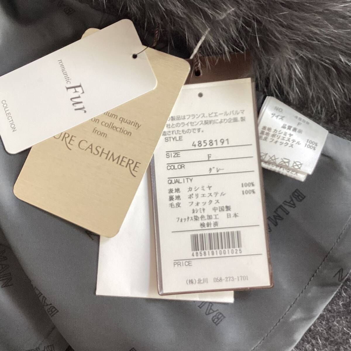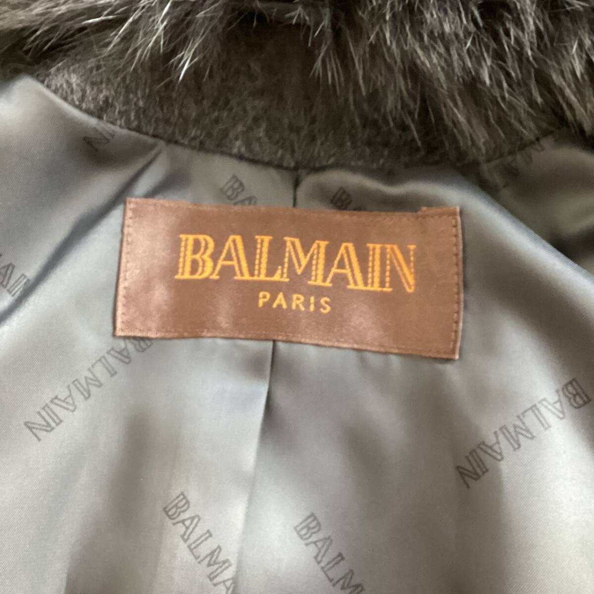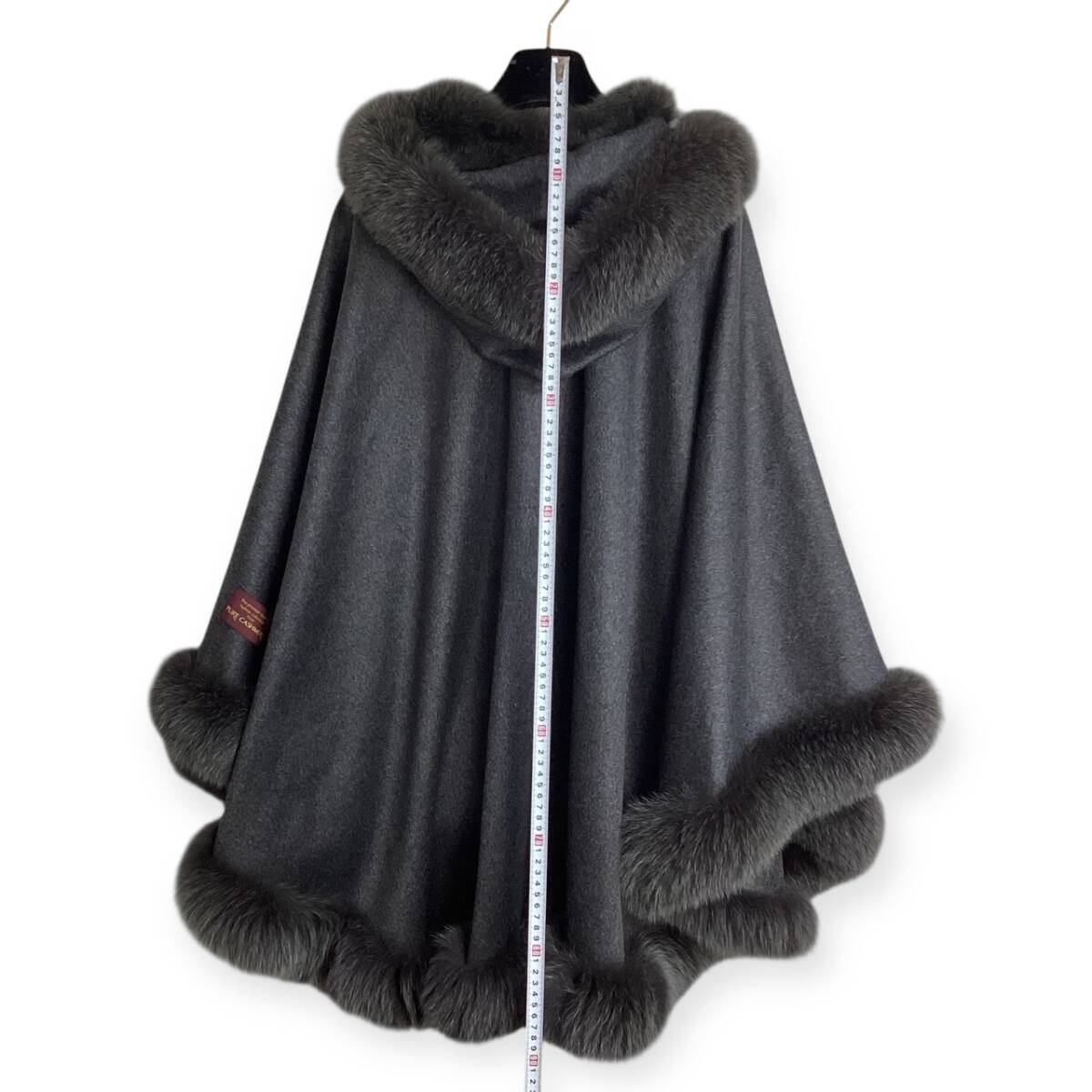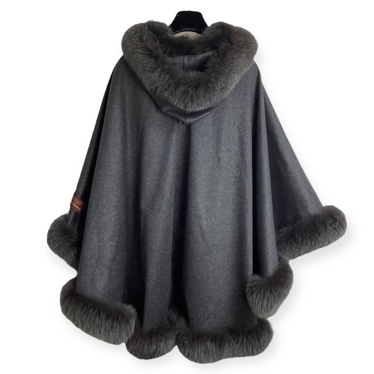 タグ付き☆カシミヤ&フォックスファー☆BALMAIN バルマン ポンチョ ケープ コート 毛皮 レディース フード グレー