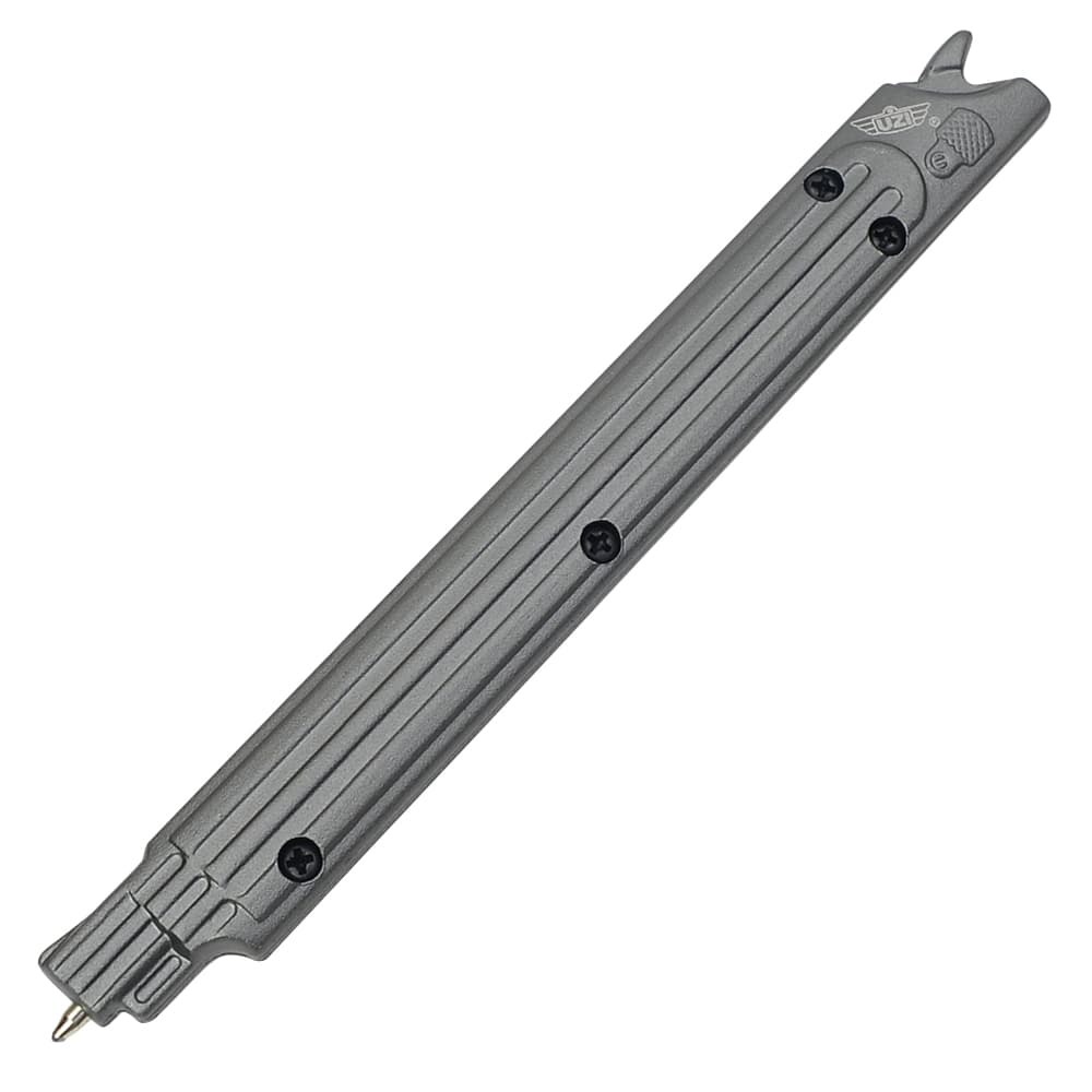 「UZI タクティカルペン 21GM リボルバー」は、無駄を削ぎ落としたミリタリーデザインと、鈍く光るガンメタルのボディが融合した、タクティカルペンです。航空機グレードのアルミニウムボディは、高い耐久性と適度な重量感を両立。
