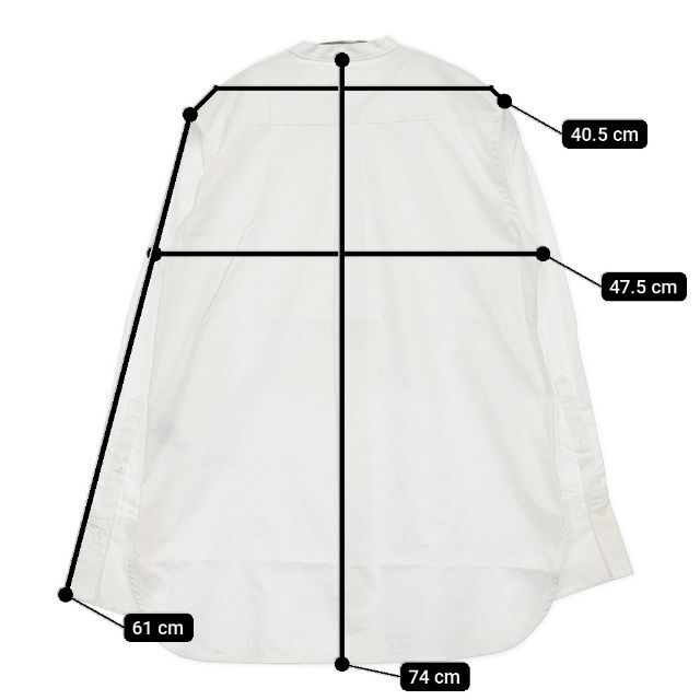 | アイテム | 長袖シャツ バンドカラーオックスロングシャツ 定価16500円 比翼ボタン |