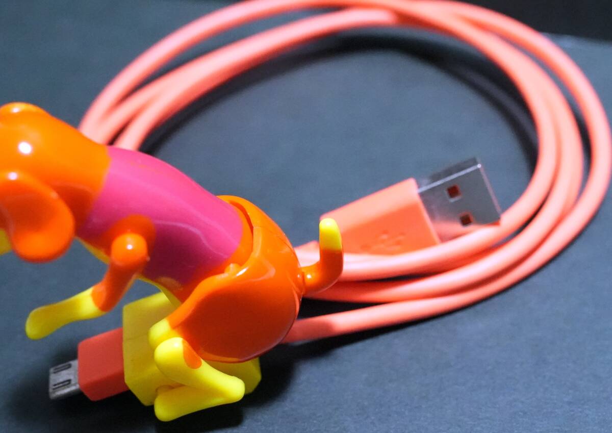 充電及びデータ転送中腰を振るユニークな犬です。