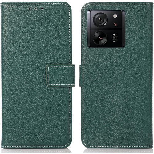 For Xiaomi 13T/13T Pro ケース 手帳型 13T プロ 財布型 高級PUレザー カード収納 大容量 3枚 横置きスタンド機能 内蔵マグネット開閉式 耐衝撃 全面保護 シンプルカバー ハンドメイド 汗や指紋防止 肌触り良い 360度保護 男女兼用 おしゃれ グリーン Rureu01