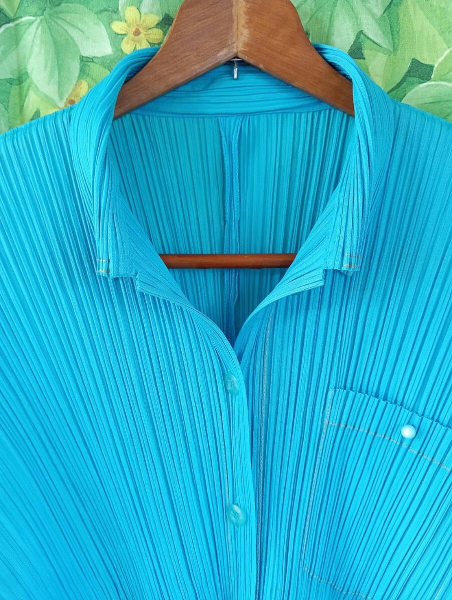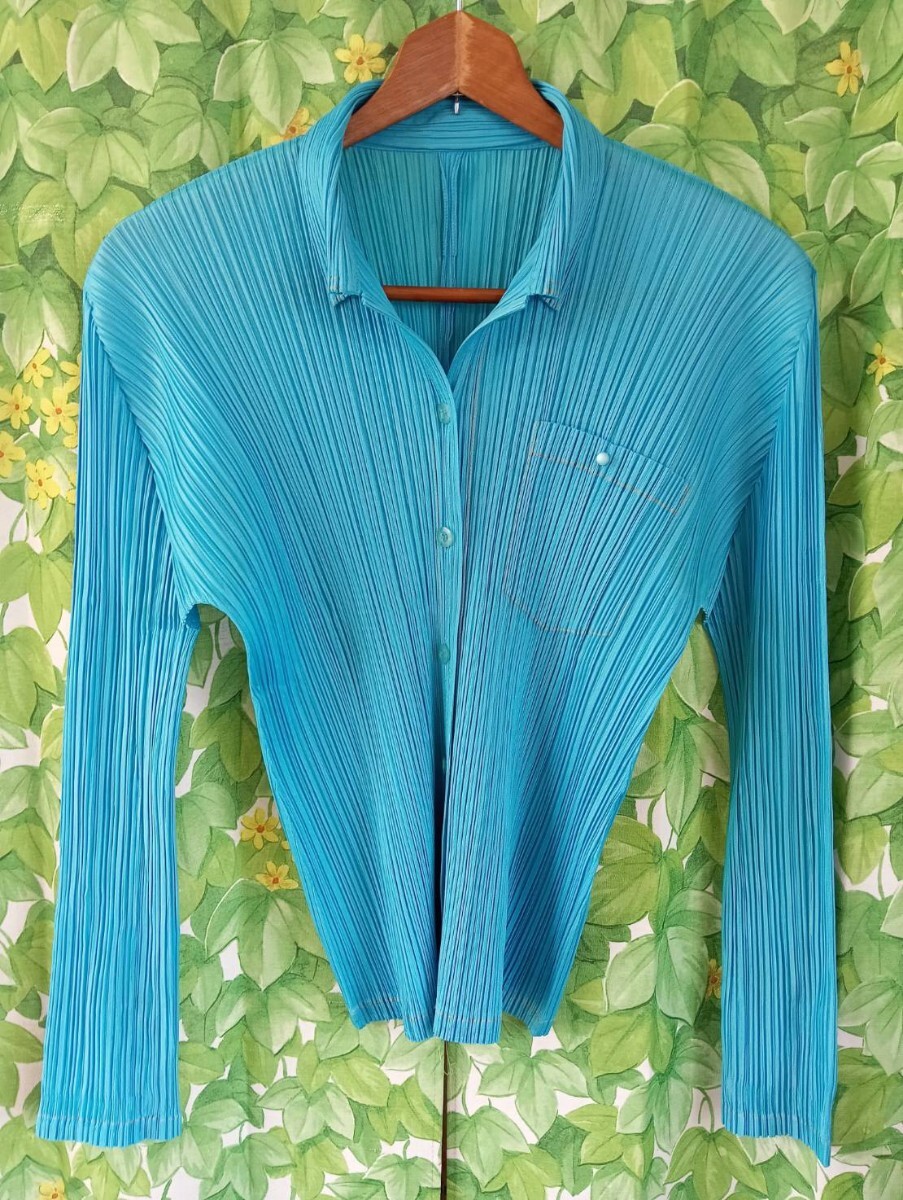 【中古品】PLEATS PLEASE プリーツプリーズ イッセイミヤケ 長袖 シャツ ブラウス レディース 水色 ライトブルー