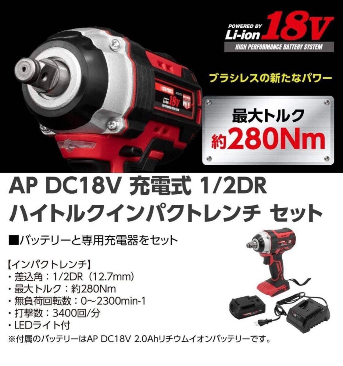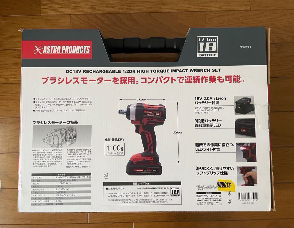 アストロプロダクツ製 DC18V 充電式 1/2DR ハイトルクインパクトレンチ セット【セット】【コードレス 充電式 バッテリー インパクトレンチ インパクト タイヤ交換 タイヤ トルク 280Nm DIY 本体 EVO 18V 電動工具 電動 】